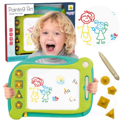 Magnetinė piešimo lenta suteikia vaikams galimybę ilgai ir kūrybiškai leisti laiką, skatinant piešimą ir rašymą. Piešimas padeda vaikui susikaupti, nusiraminti