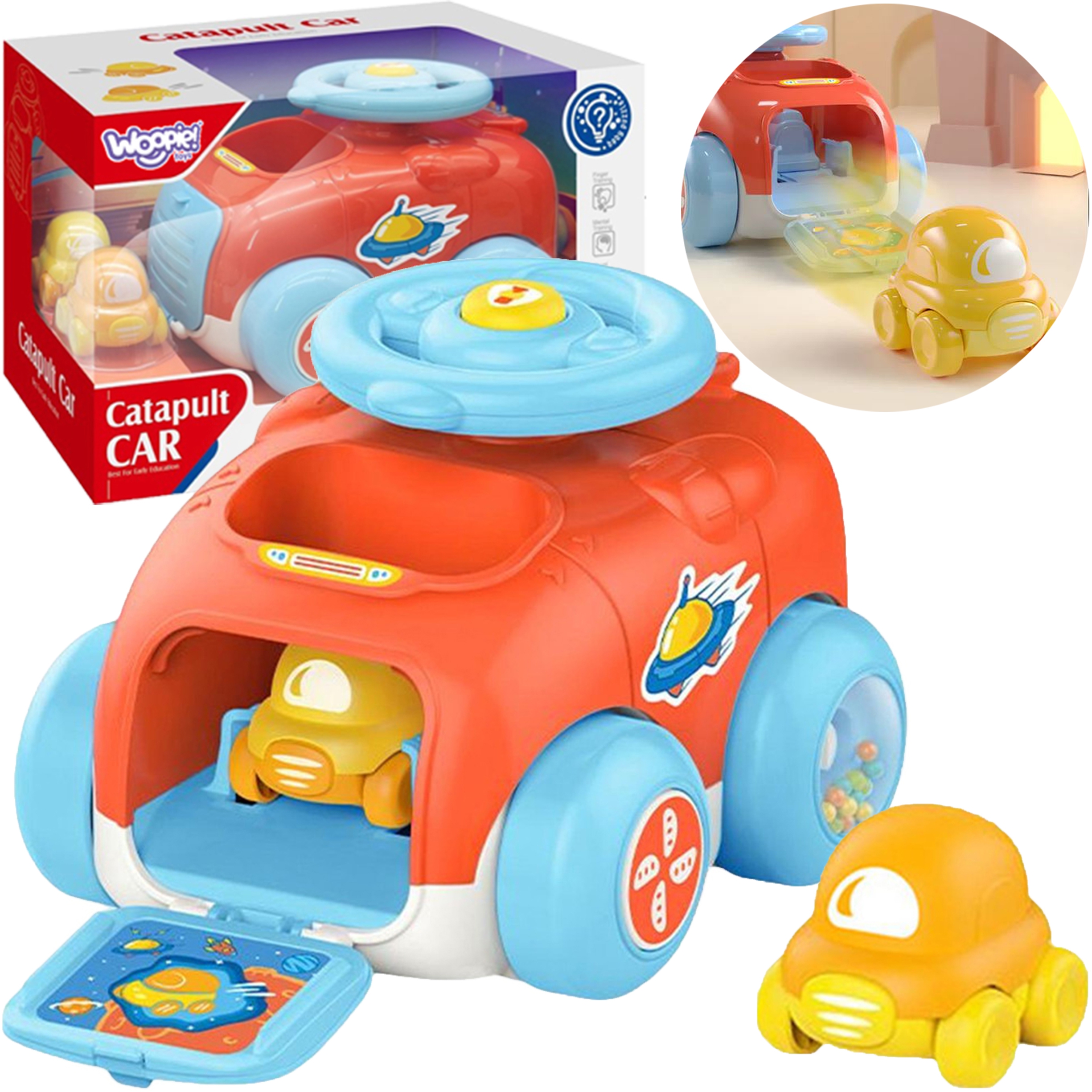 WOOPIE prekės ženklo automobilis su paleidimo įtaisu yra puikus pasirinkimas vaikams, mėgstantiems aktyvius žaidimus! Šis interaktyvus žaislas siūlo ne tik važiavimo pramogas, bet ir leidžia dar labiau įdominti žaidimą su paleidimo mechanizmu. Automobilis turi dvi mažesnes transporto priemones ant ratų, kurios lengvai telpa į paleidimo įrenginį. Įstatykite automobilį, pasukite vairą, paspauskite garso signalą ir stebėkite, kaip jis šauna iš transporto priemonės! Ratuose yra integruoti garsiniai elementai, kurie skleidžia garsus, kai automobilis juda. Tai nuostabus žaidimas tiek vienam, tiek draugų kompanijoje.