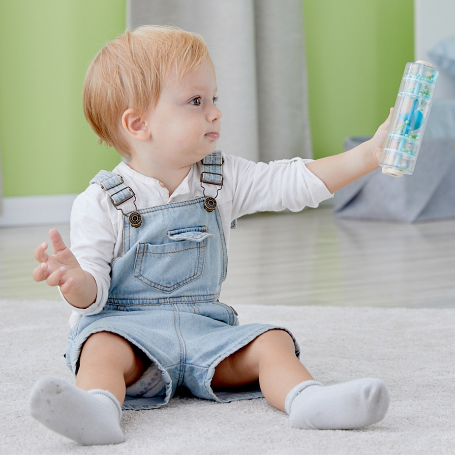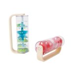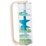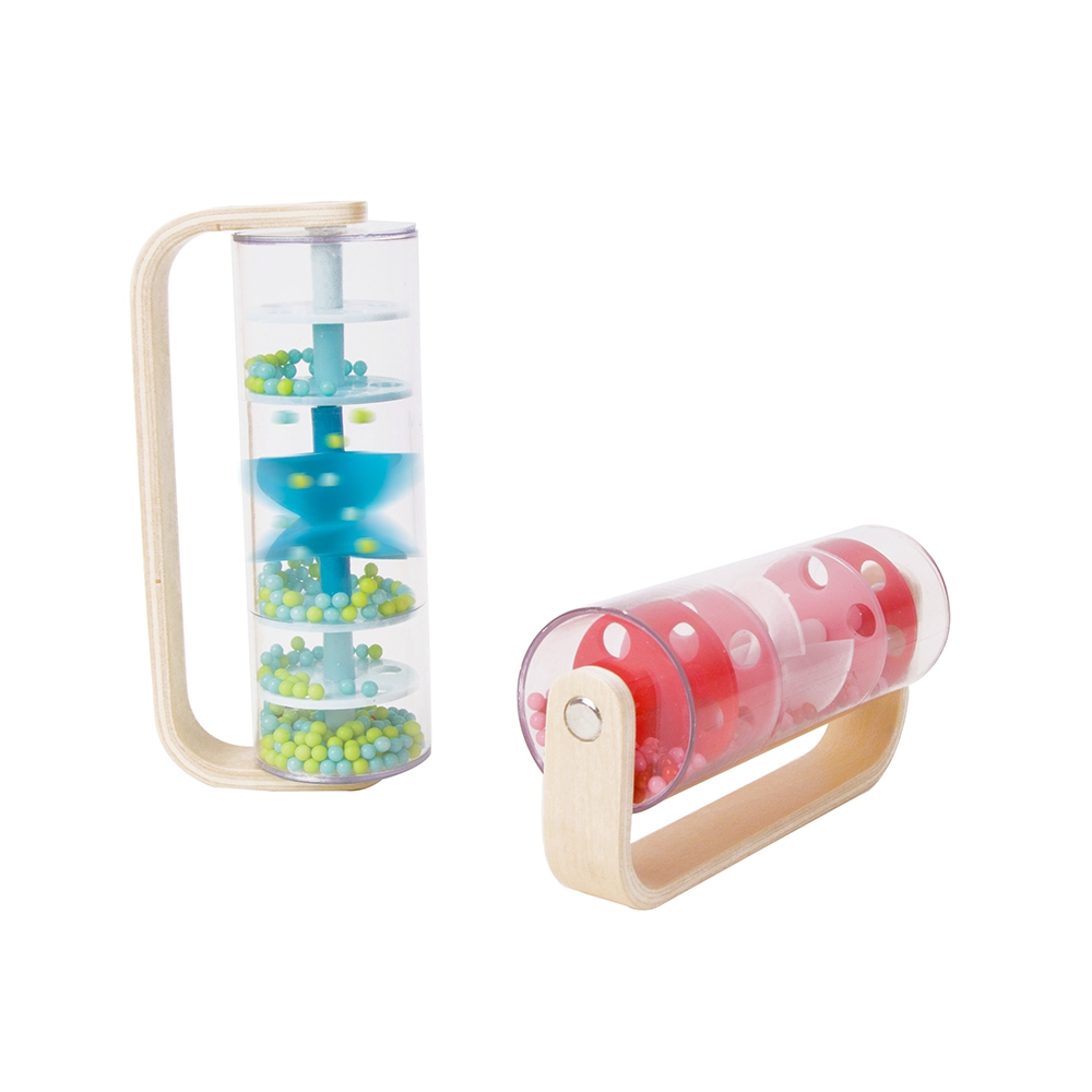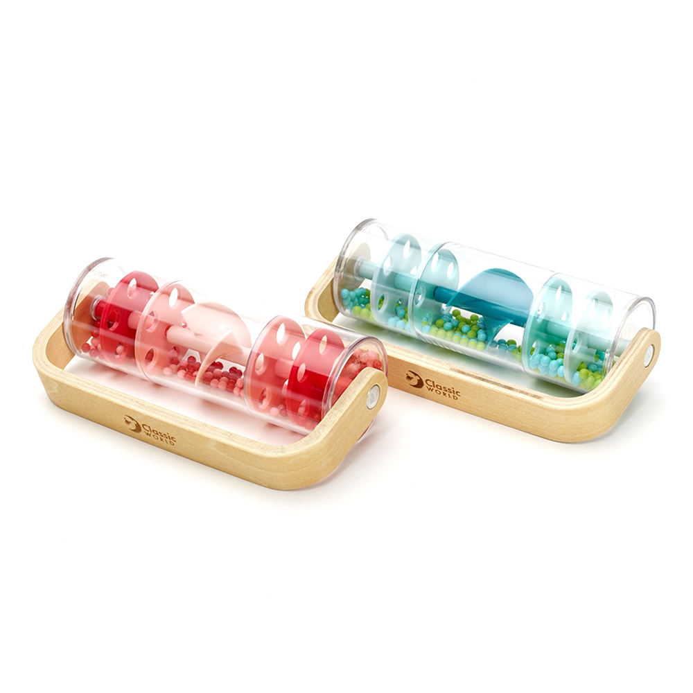 Medinis ir plastikinis mėlynas lietaus dušas su kamuoliukais, sukurtas CLASSIC WORLD su tekančiais kamuoliukais, sukuriančiais raminantį krintančio lietaus garsą. Pakratykite, pasukite ir pasukite, pažiūrėkite, kaip karoliukai krenta iš viršaus į apačią. Vienu greitu suėmimu galite paversti šį žaislą barškučiu, kuris sukasi 360 laipsnių.Puiki galimybė lavinti jutimus. Puikus rekvizitas euritmikos užsiėmimams!