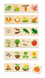 Rinkinyje yra 24 medinės detalės su spalvingais paveikslėliais, kuriuose parodomi gyvūnų gyvenimo etapai, pradedant nuo jų gimimo.