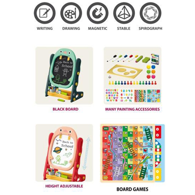 • Viskas viename: Tai universali lenta, skirta ne tik piešimui, bet ir rašymui, skaičiavimui, stalo žaidimams ir netgi mokymuisi. Vaikai gali eksperimentuoti su įvairiais kūrybiniais ir edukaciniais užsiėmimais vienoje vietoje.