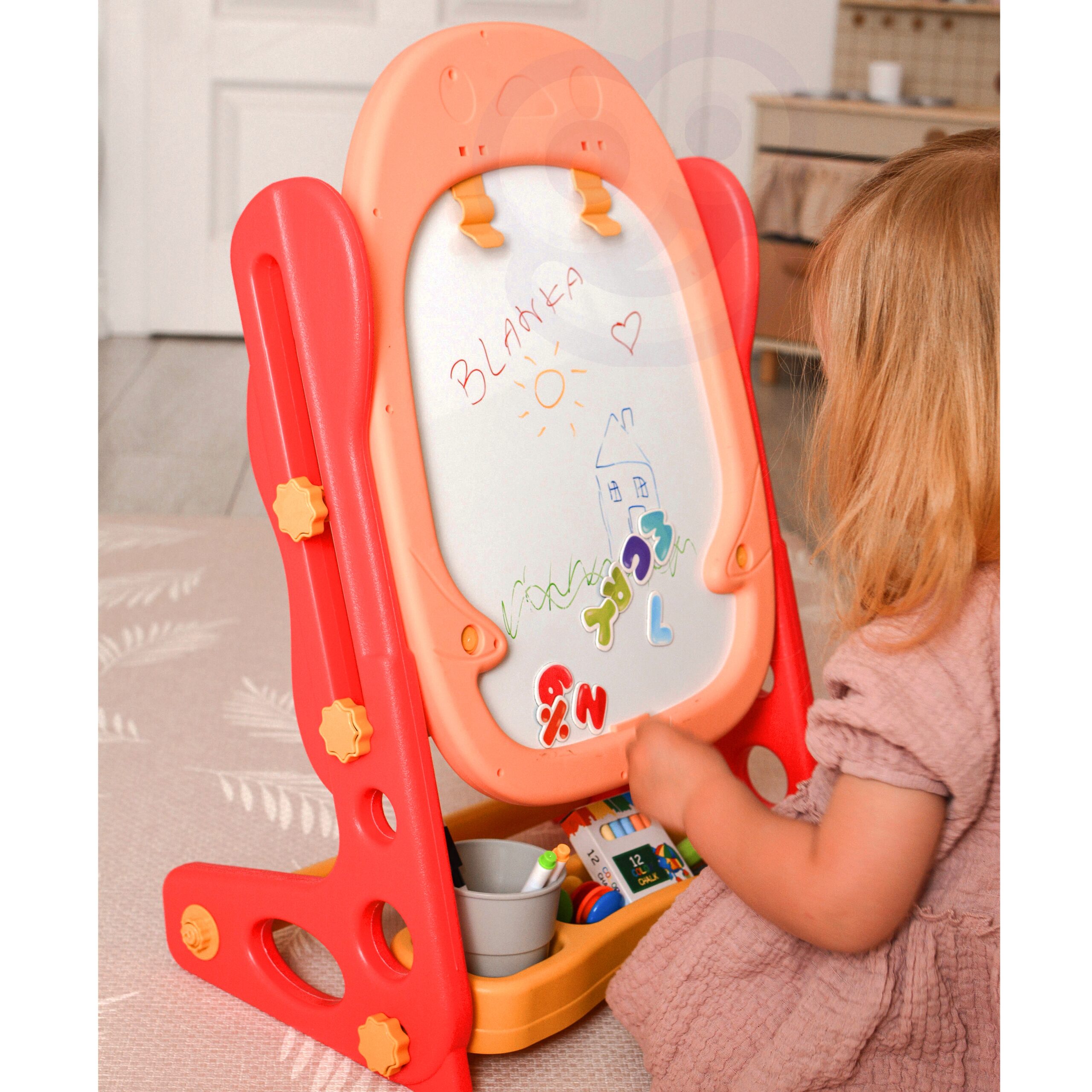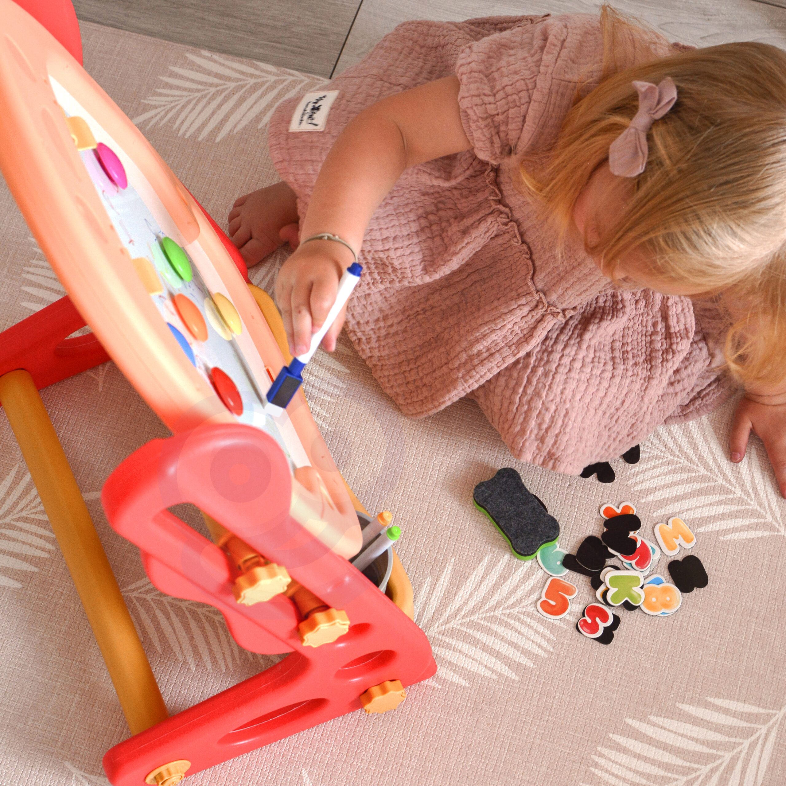 - Viskas viename: Ši lenta – tai ne tik piešimo lenta, bet ir mokymosi priemonė, ir žaidimų aikštelė. Čia jūsų vaikas galės piešti, rašyti, skaičiuoti, žaisti stalo žaidimus ir dar daugiau!