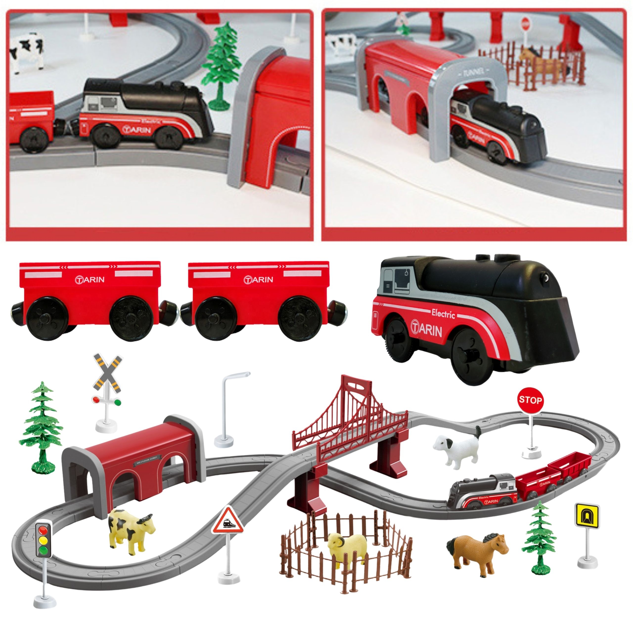 Elektrinis traukinukų rinkinys WOOPIE su ferma ir gyvūnais