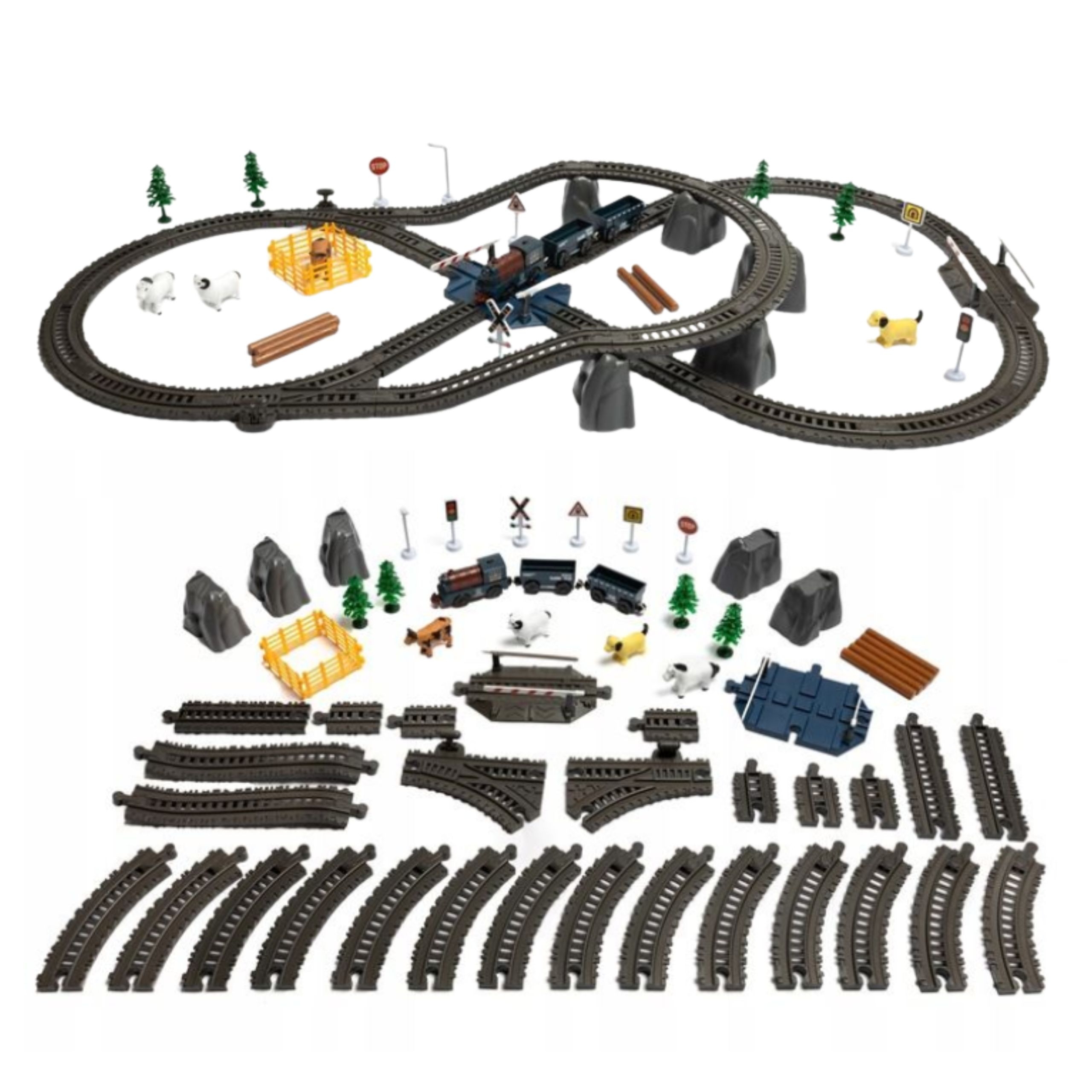• Krovininiai vagonai: pritaikyti gyvūnų figūrėlėms ar kitiems smulkiems daiktams vežti.