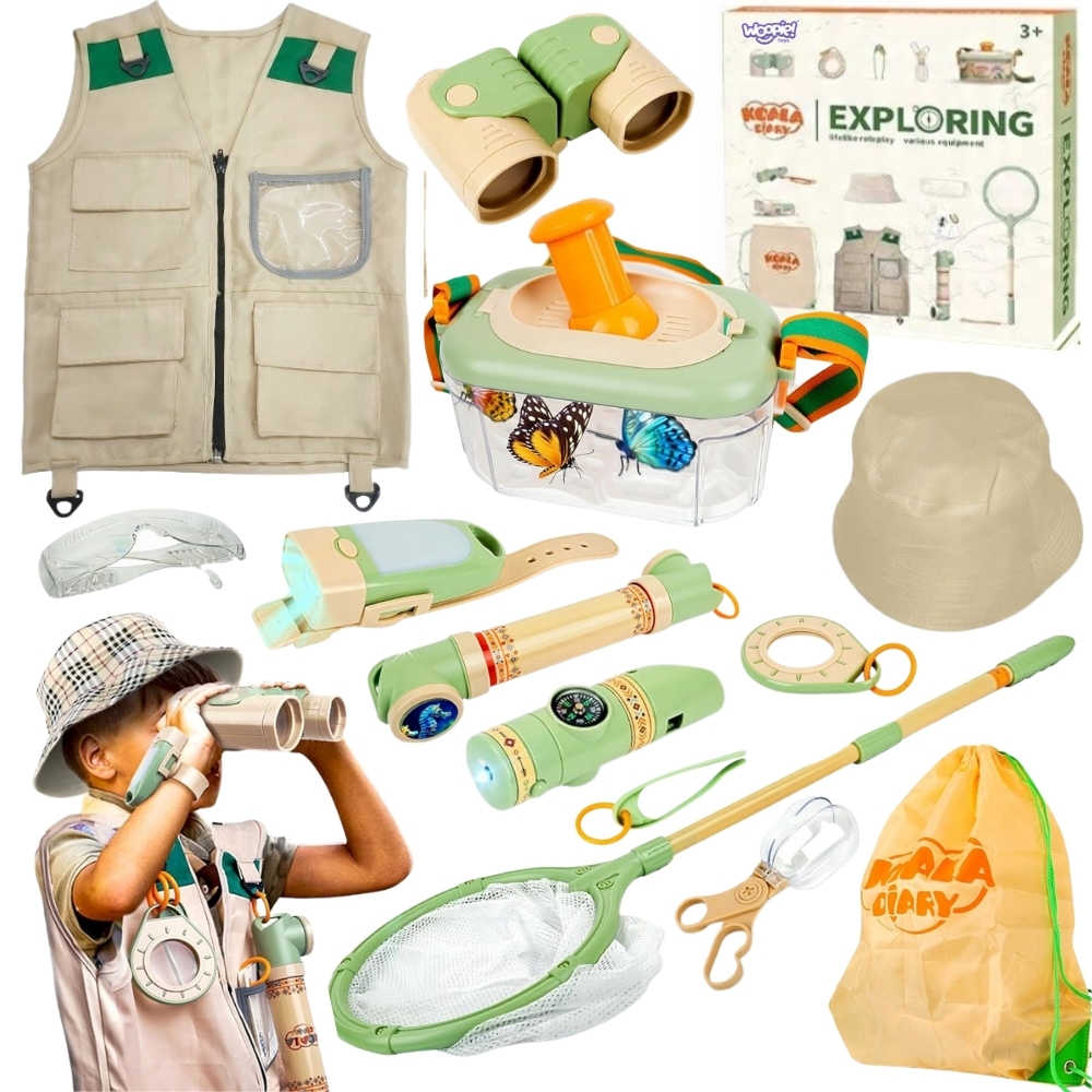 Pasiruoškite nepamirštamai kelionei į gamtos pasaulį su šiuo fantastišku „Mažojo atradėjo“ rinkiniu iš „Woopie“! Šis išsamus rinkinys yra tobula dovana kiekvienam nuotykių ištroškusiam mažyliui, svajojančiam tyrinėti sodo, miško ar net savo kiemo paslaptis. Su šiuo rinkiniu jūsų vaikas taps tikru gamtos tyrinėtoju, ugdys smalsumą pasauliui ir praleis valandų valandas aktyviai bei lavinančiai žaisdamas gryname ore. Nuo žiūronų, tinklelio vabzdžiams gaudyti, iki liemenės ir skrybėlės – viskas, ko reikia jaudinančiai ekspedicijai!