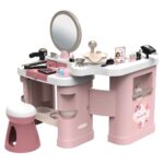 Leiskite savo vaikui pasijusti tikru grožio profesionalu nuosavame salone! Unikalus „Smoby My Beauty“ centras sujungia net tris skirtingas žaidimų erdves – kirpyklą, manikiūro ir makiažo studiją, siūlydamas viską, ko reikia kūrybiškiems vaidmenų žaidimams. Kosmetikos staliuko zonoje yra patogi kėdutė, veidrodis ir lentynėlės, kirpyklos dalyje – kriauklė su dušu, o pardavėjo kampelyje – mokėjimo terminalas ir prekystalis. Rinkinyje esantys net 32 priedai imituoja tikrus grožio įrankius bei priemones ir suteikia žaidimui dar daugiau realistiškumo. Baigus žaisti, rinkinys patogiai ir kompaktiškai susilanksto, todėl neužima daug vietos kambaryje.