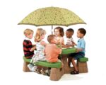 Step2 iškylos stalas su skėčiu iš serijos Naturally Playful yra puikus pasirinkimas vaikų žaidimams ir iškyloms sode. Sukurtas garsios amerikiečių kompanijos Step2, šis sodo baldas idealiai tinka karštoms dienoms, kai norisi praleisti laiką lauke. Stalas yra su dviem ilgais suolais, kurie patogiai talpina iki 6 vaikų, o platus stalviršis užtikrina pakankamai vietos tiek žaidimams, tiek valgymui.