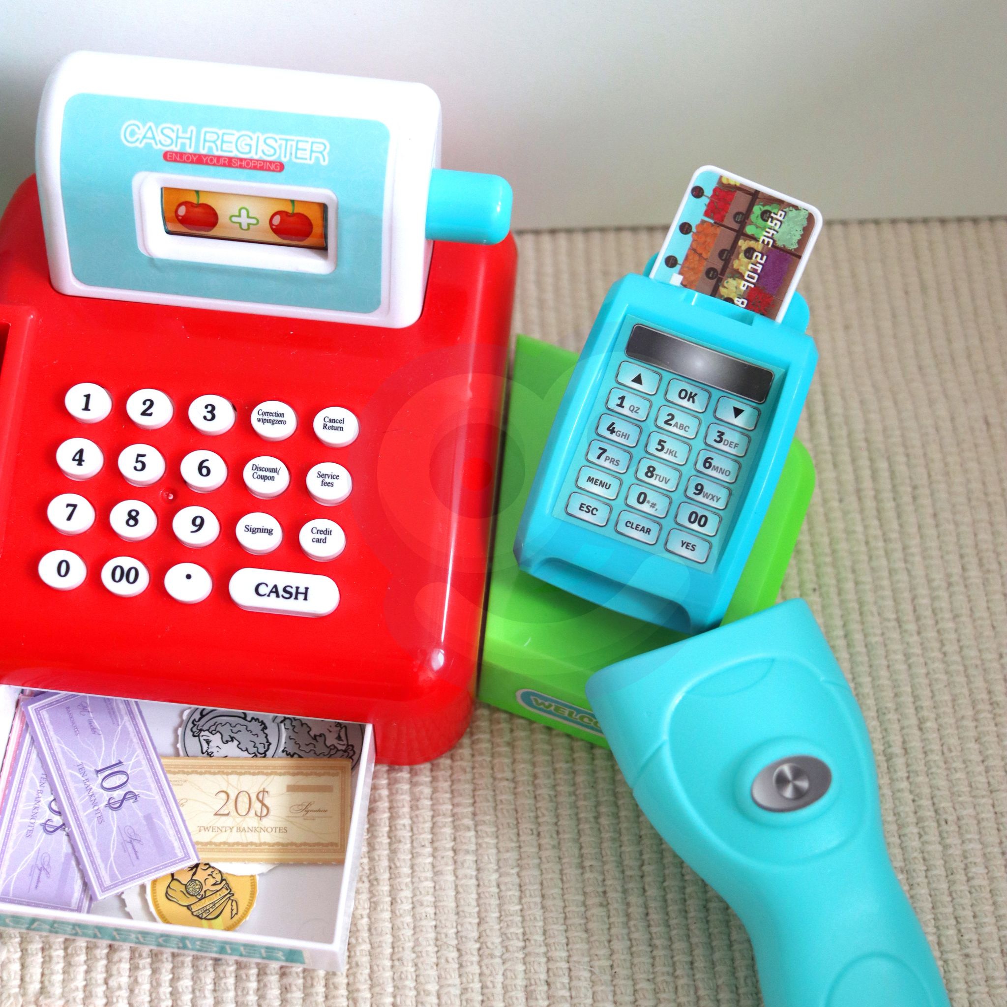- Komplektas: Parduotuvės kasos aparatas su 18 priedų.