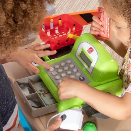 • Interaktyvumas: Brūkšninio kodo skaitytuvas skenuodamas prekes skleidžia garsus, suteikdamas realistišką apsipirkimo patirtį.