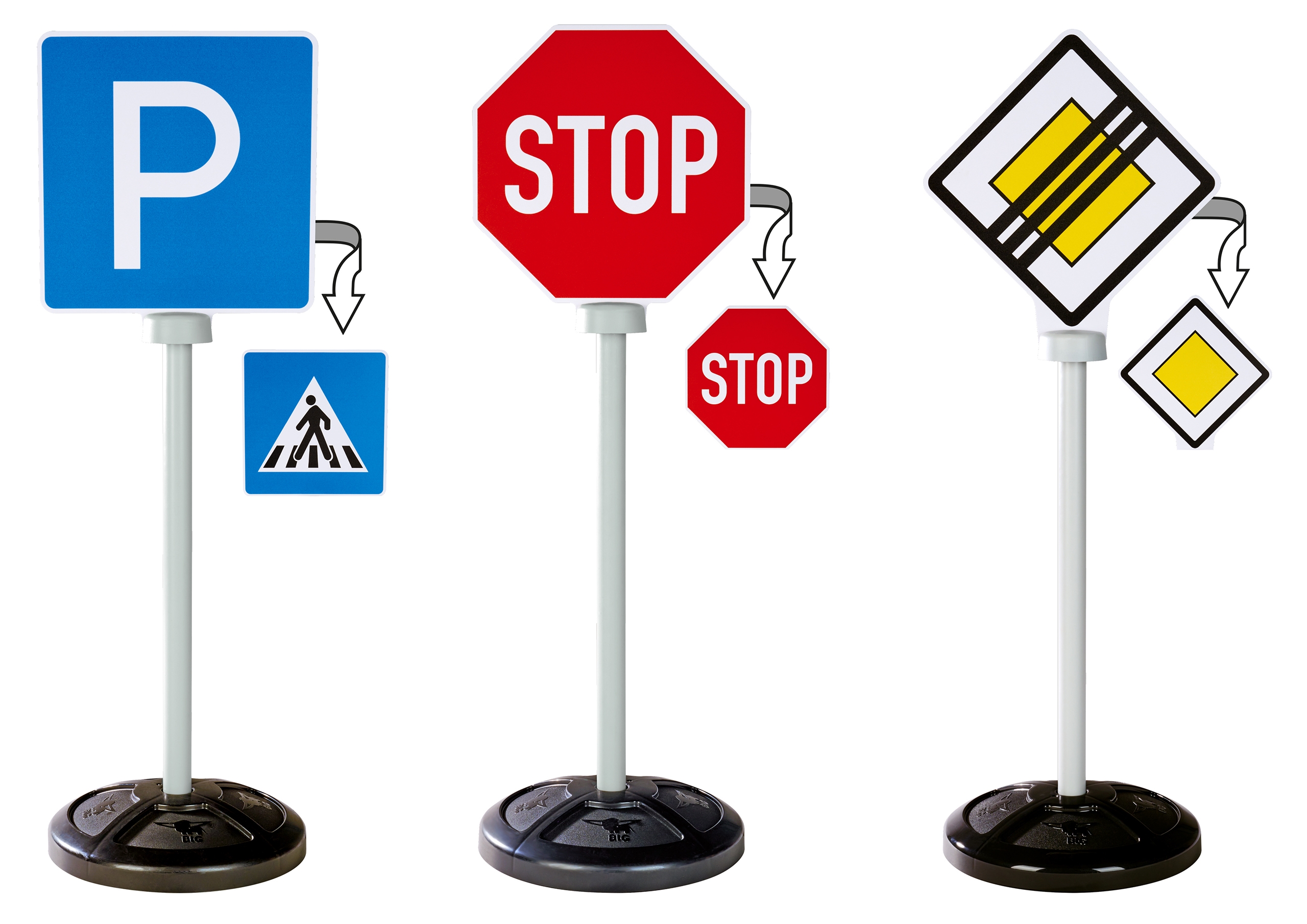 BIG kelio ženklų rinkinys – tai puiki lavinamoji priemonė, skirta patiems mažiausiems eismo dalyviams jau nuo 12 mėnesių. Dėl tikroviškų ženklų vaikai lengvai ir žaismingai išmoks pagrindines kelių eismo taisykles, ugdydami saugaus elgesio kelyje įpročius.