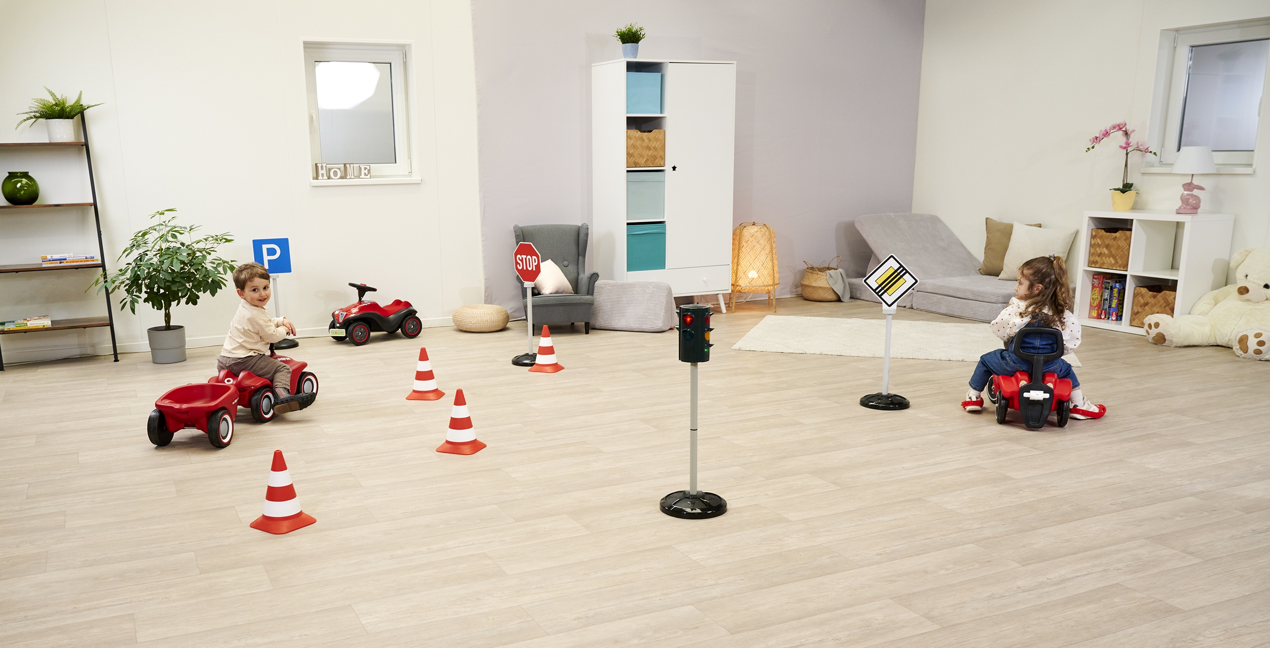 - Judesio koordinaciją: mažyliai lavina vikrumą ir judrumą, judėdami po įsivaizduojamas „gatves“ pagal taisykles.