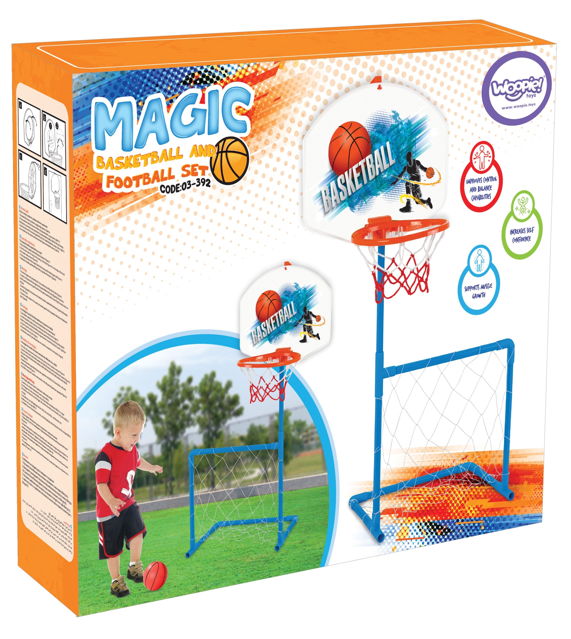 WOOPIE 2in1 krepšinio ir futbolo rinkinys – sporto džiaugsmas ir aktyvumas Jūsų vaikui!