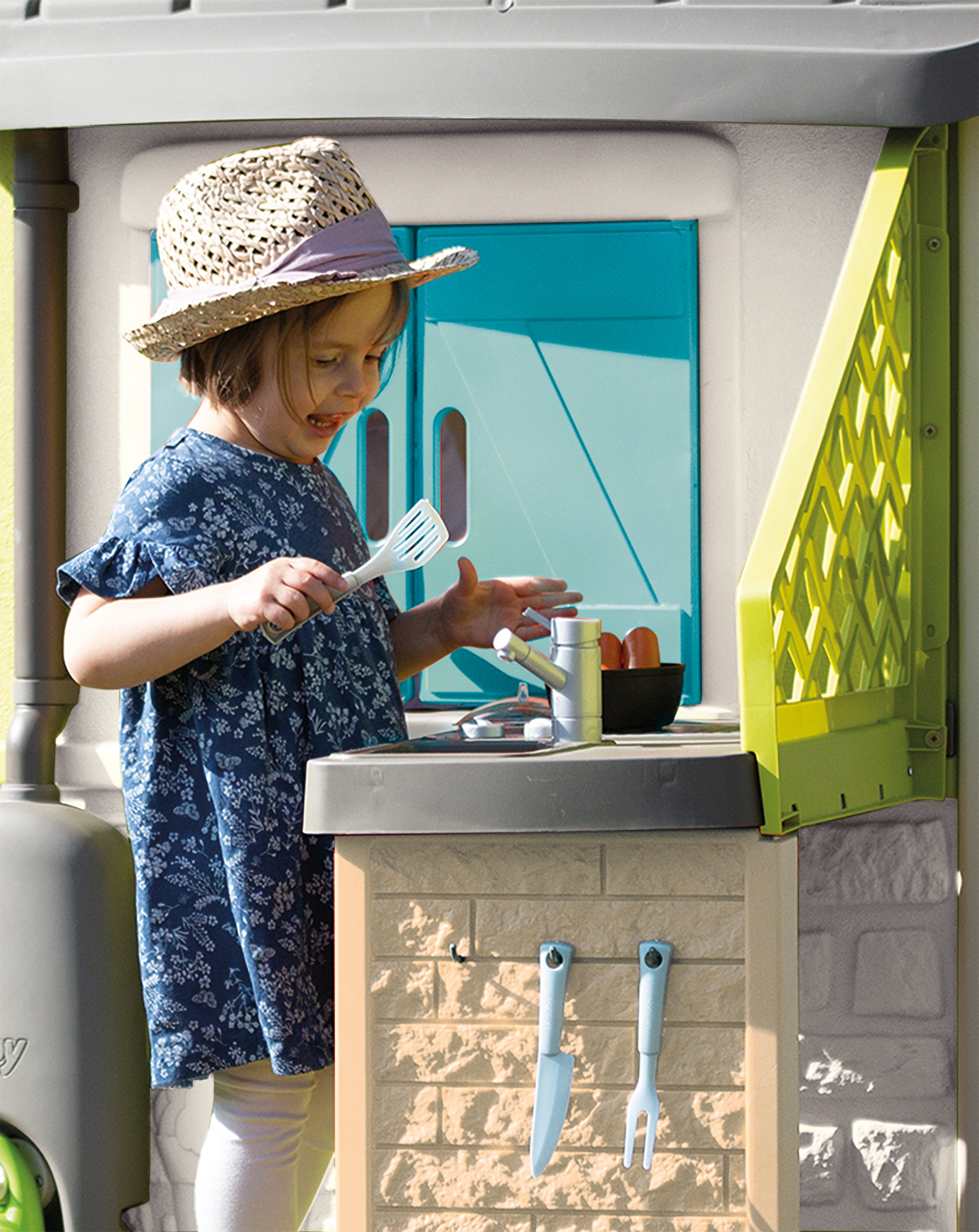 SMOBY vasaros virtuvė ne tik papildo Neo Jura namą, bet ir suteikia vaikams galimybę išbandyti įvairias kulinarines veiklas, taip skatindama jų kūrybiškumą ir socialinius įgūdžius.