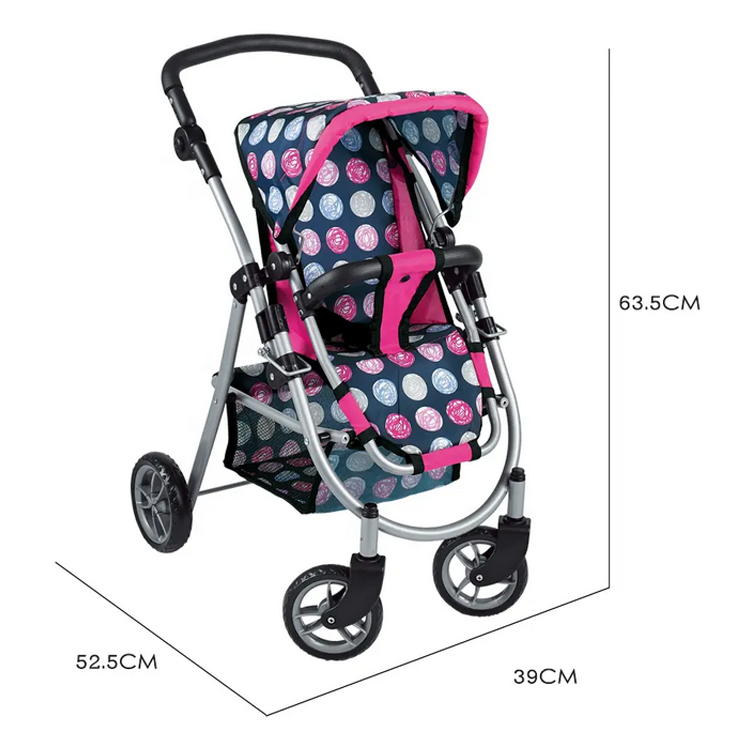 Elegantiškas ir funkcionalus WOOPIE prekės ženklo lėlių vežimėlis ROYAL serijos – tai išsvajota dovana kiekvienai mažajai lėlių entuziastei. Jo reguliuojamą sėdynę galima nesunkiai pritaikyti įvairiems žaidimų scenarijams, leidžiant patogiai vežioti mylimiausias lėles. Lengvai besisukantys priekiniai ratukai užtikrina nepriekaištingą manevringumą ir sklandų riedėjimą, o tvirta vežimėlio konstrukcija garantuoja stabilumą pasivaikščiojimų metu. Šis lėlių vežimėlis vaikams turi minkštą, ergonomišką rankeną bei talpų krepšelį daiktams, kuriame tilps visi žaidimams reikalingi priedai. Nuleniamas stogelis apsaugos lėlytes nuo įsivaizduojamos saulės kaitros, o pasibaigus žaidimams, vežimėlį galima kompaktiškai sulankstyti ir patogiai sandėliuoti.