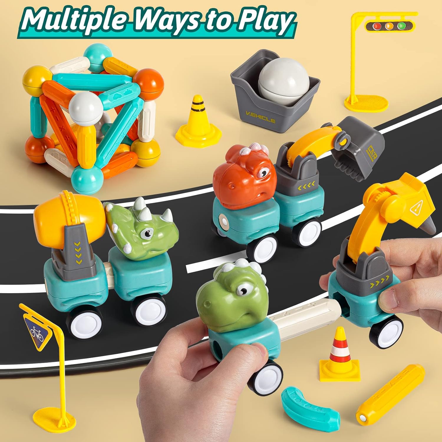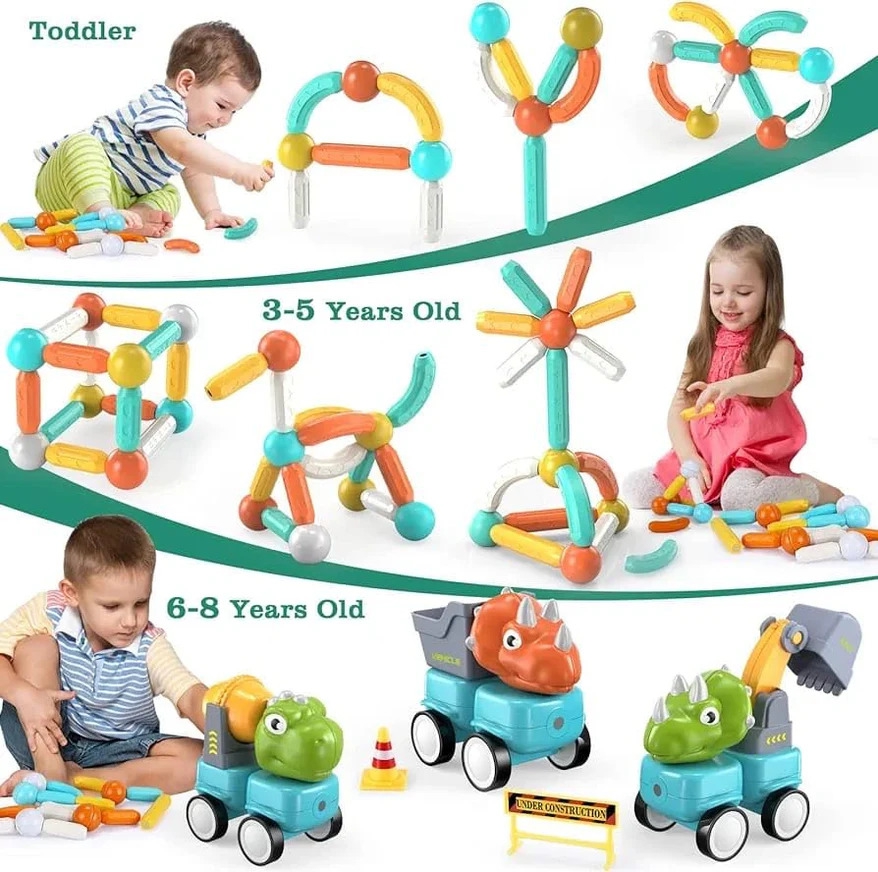 Šis WOOPIE prekės ženklo magnetinių kaladėlių rinkinys yra nuostabi dovanos idėja mažiesiems! Tai išradingas ir įtraukiantis būdas praleisti laiką. Su šiomis kaladėlėmis galima kurti ne tik plokščias figūras, bet ir sudėtingas erdvines 3D konstrukcijas, gyvūnėlius, o taip pat padėti vaikui mokytis skaičiuoti, dėliojant skaičius! Kūrybinės galimybės yra išties neribotos. Leiskite vaikui sukurti pasaulį pagal savo vaizduotę, spręsti erdvines užduotis ir lavinti įgūdžius! Komplekte taip pat rasite žavius mini automobiliukus-dinozaurus, kurie suteiks dar daugiau džiaugsmo žaidžiant ir atvers vaikui naujas konstravimo perspektyvas. Visos rinkinio detalės turi integruotus magnetus, leidžiančius lengvai ir tvirtai jas sujungti, tad net mažiausieji konstruotojai sėkmingai kurs savo statinius. Ryškios spalvos ir didelės detalės užtikrins dar smagesnę ir turiningesnę žaidimo patirtį.
