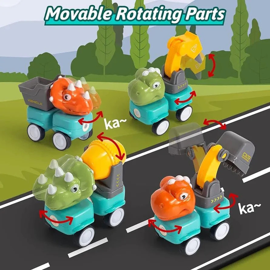 - Mieli dinozaurų formos automobiliukai papildomoms pramogoms.