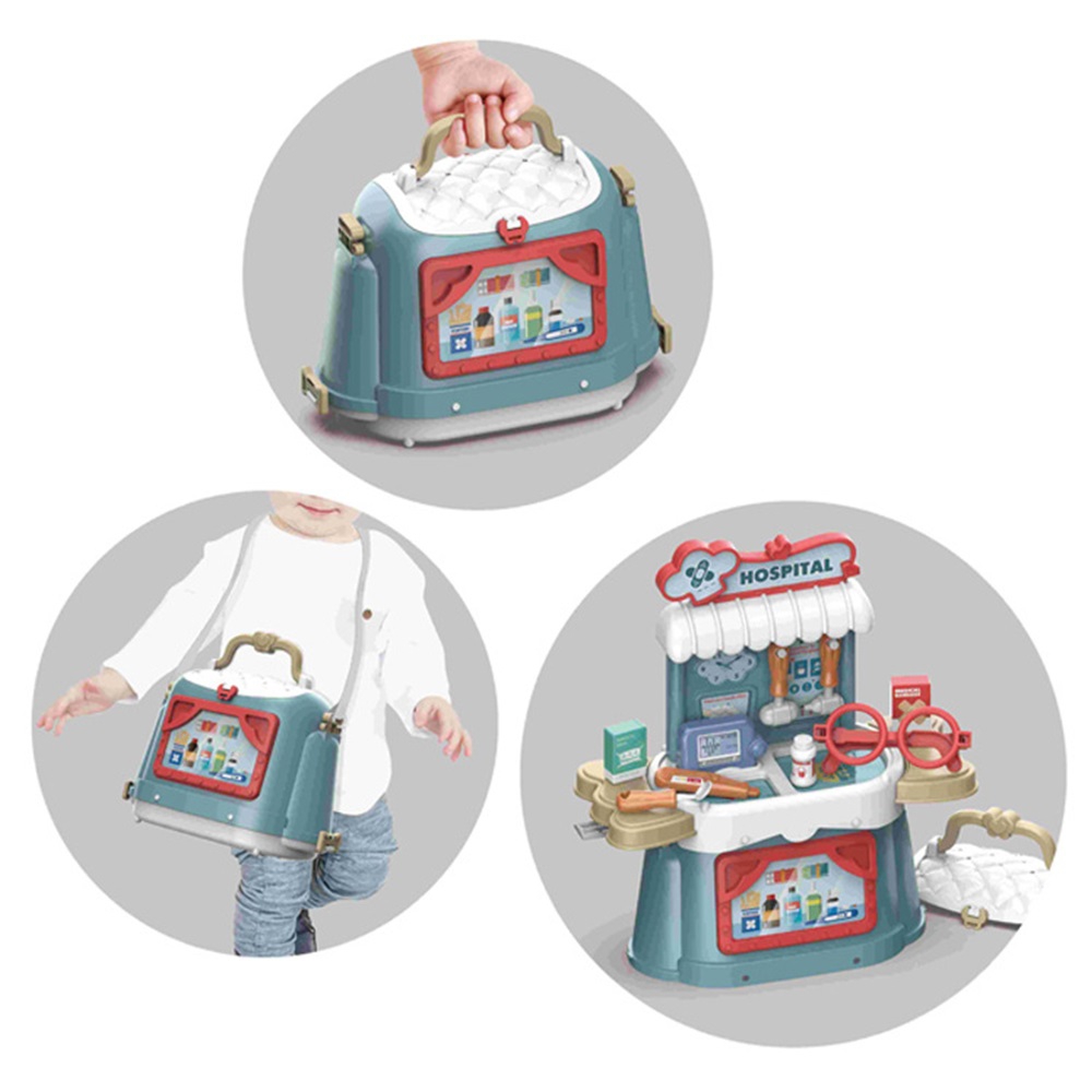 - 3-in-1 dizainas: Žaislas gali būti naudojamas kaip lagaminas, kuprinė arba gydytojo kabinetas, todėl vaikai gali lengvai pasiimti jį visur.
