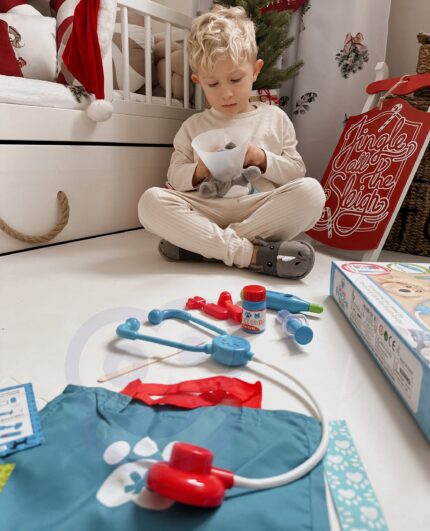 - Vaidmenų žaidimas: Rinkinys leidžia vaikams vaidinti gydytojus ir pacientus, puikiai tinka žaidimams su draugais ir šeima.