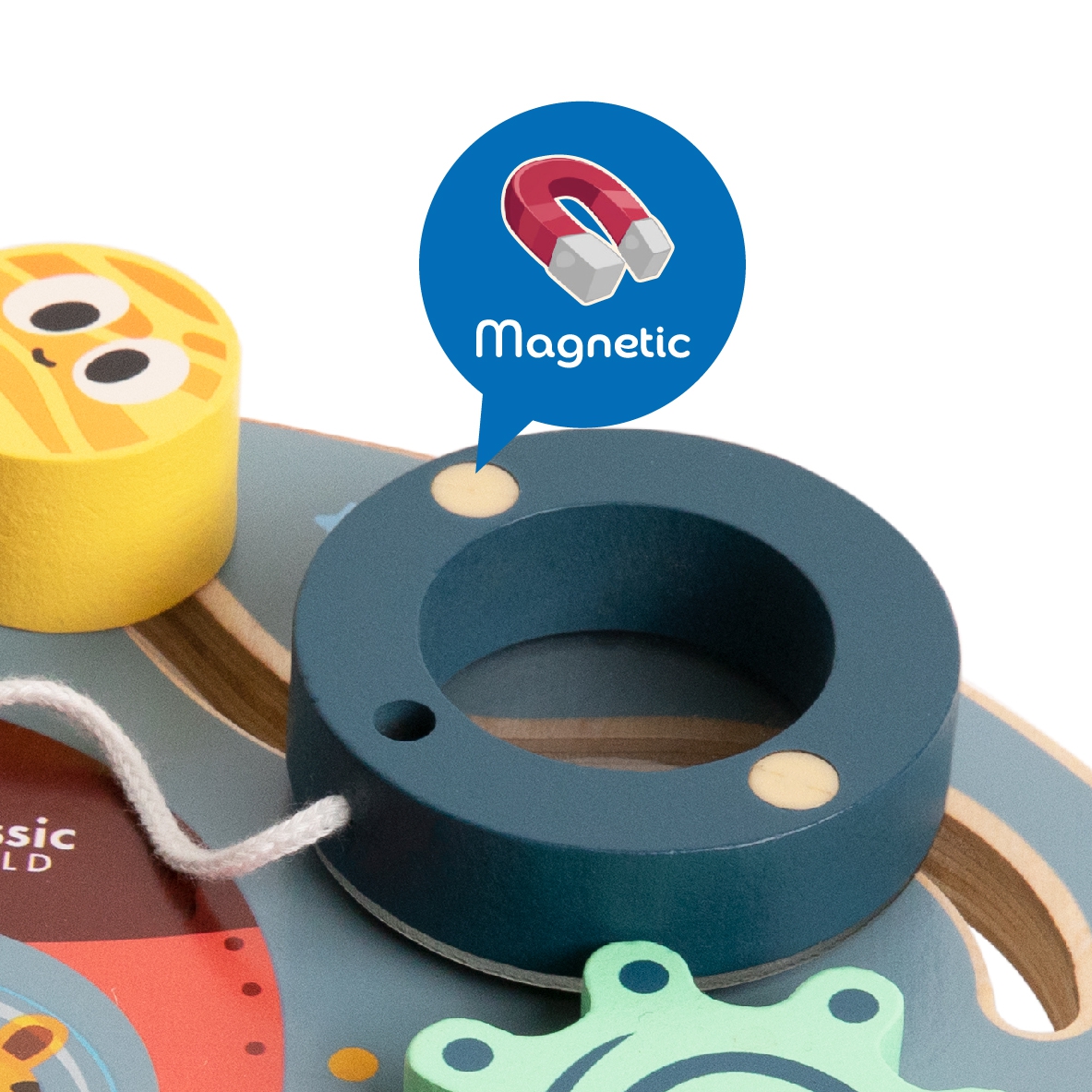 Pradžia Mediniai žaislai Edukaciniai ir montessori žaislai Medinė daugiafunkcė edukacinė manipuliacinė lenta vaikams | Raketa | Classic World CW20170