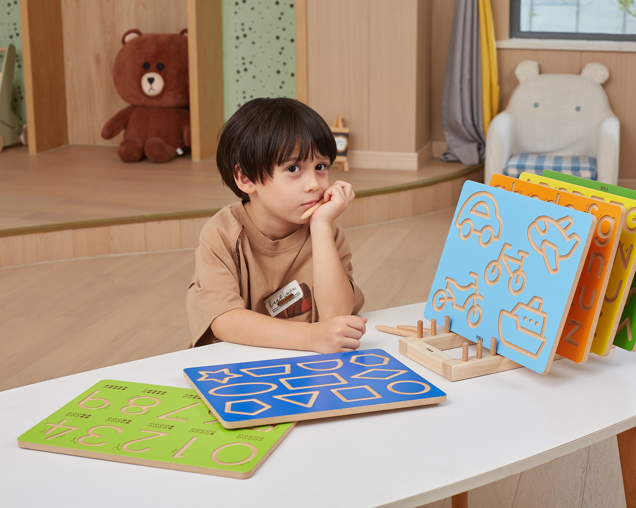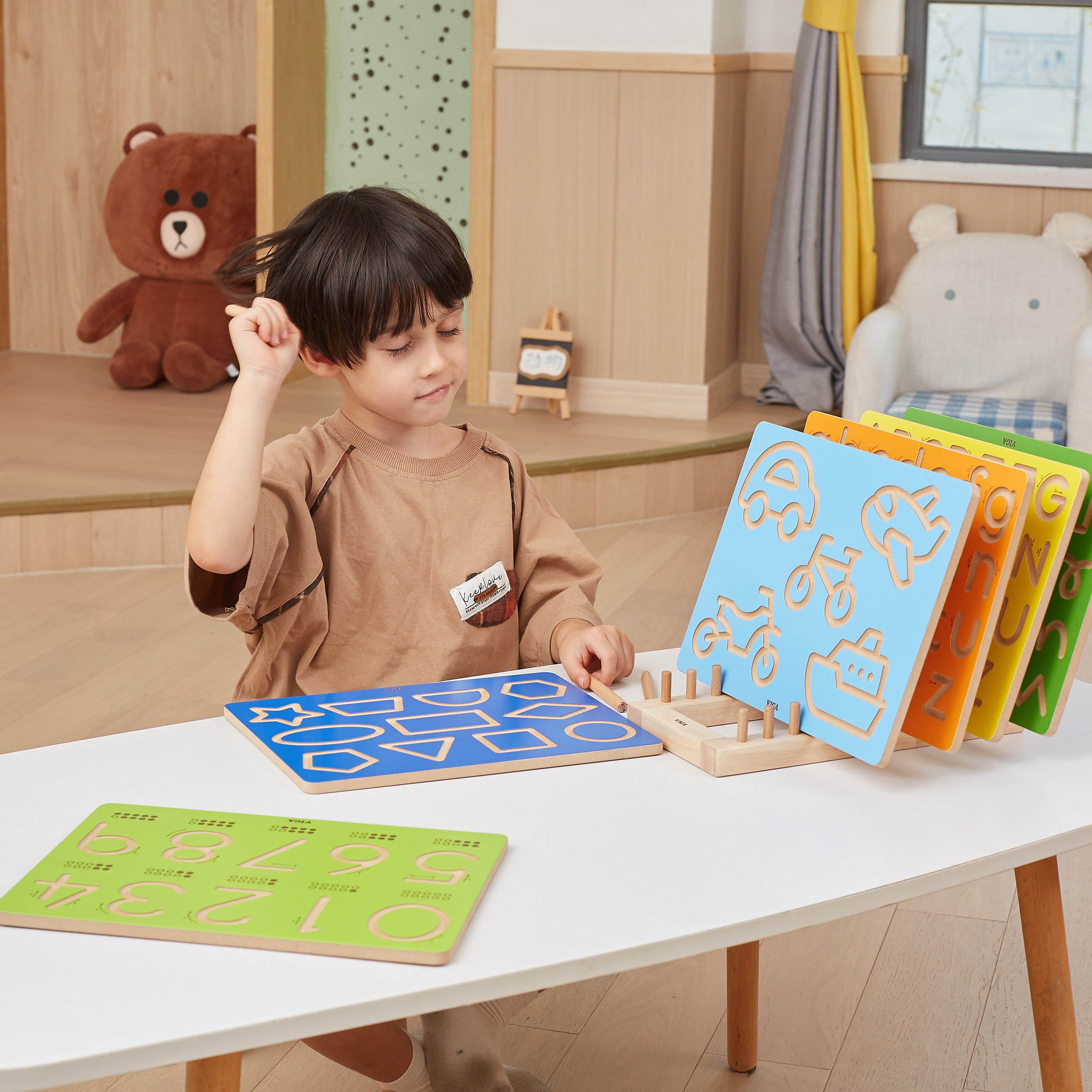 Medinė grafomotorinė lenta vaikams | Mokausi rašyti | Skaičiai | VIGA 44698