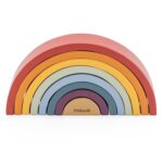 Medinė vaivorykštė nuo pat pirmųjų akimirkų sužadins vaiko vaizduotę. Iš kaladėlių vaikas gali sudėlioti vaivorykštę, mokytis spalvų išdėstymo tvarkos ir kūrybiškai eksperimentuoti. Šios spalvingos arkos leidžia kurti ne tik tradicinę vaivorykštę, bet ir daugybę kitų konstrukcijų – tunelių, bokštų, ir net savitas formas. Kiekviena nauja kombinacija skatina mažylį atrasti vis daugiau žaidimo galimybių.