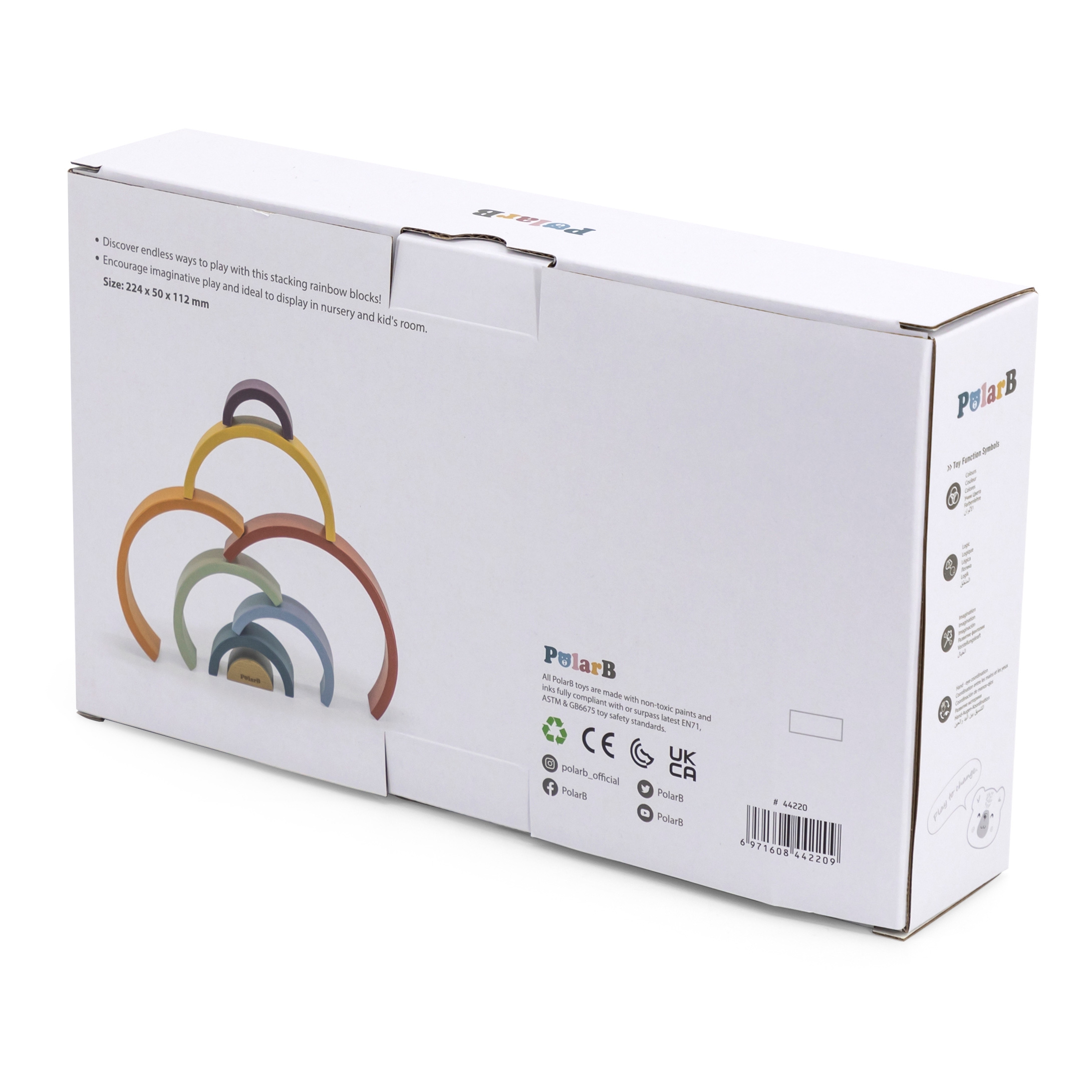 - Rinkinį sudaro 7 spalvingi lankai ir vidinis blokas su PolarB logotipu.