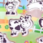 • Rinkinys: Jį sudaro plokštė su įdubomis ir 9 elementai, vaizduojantys ūkio temas su smeigtukais, kurie leidžia lengvai sugriebti.