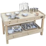Ieškote žaislo, kuris lavintų Jūsų vaiko vaizduotę, socialinius įgūdžius ir meilę gamtai? CLASSIC WORLD medinis virtuvės staliukas – puikus pasirinkimas! Šis tvirtas ir stilingas staliukas suteiks Jūsų vaikui galimybę žaisti vaidmenų žaidimus, imituoti maisto gaminimą ir smagiai leisti laiką lauke.