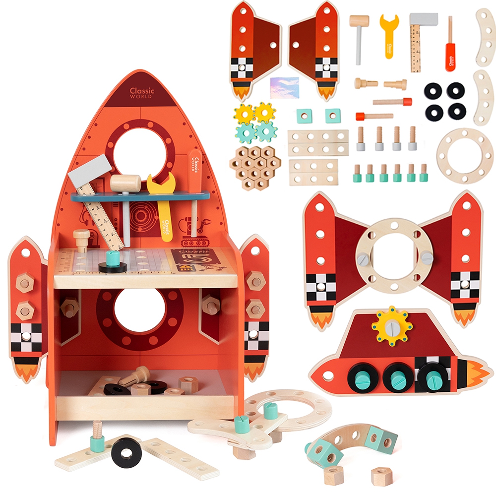 Classic World Medinių Erdvėlaivių Dirbtuvės yra puikus pasirinkimas mažiems „pasidaryk pats“ entuziastams, siekiantiems pasiekti žvaigždes! Šis rinkinys suteikia vaikams viską, ko reikia kuriant ir taisant erdvėlaivius, ir padeda lavinti įvairius įgūdžius, įskaitant kūrybiškumą ir rankinius įgūdžius.