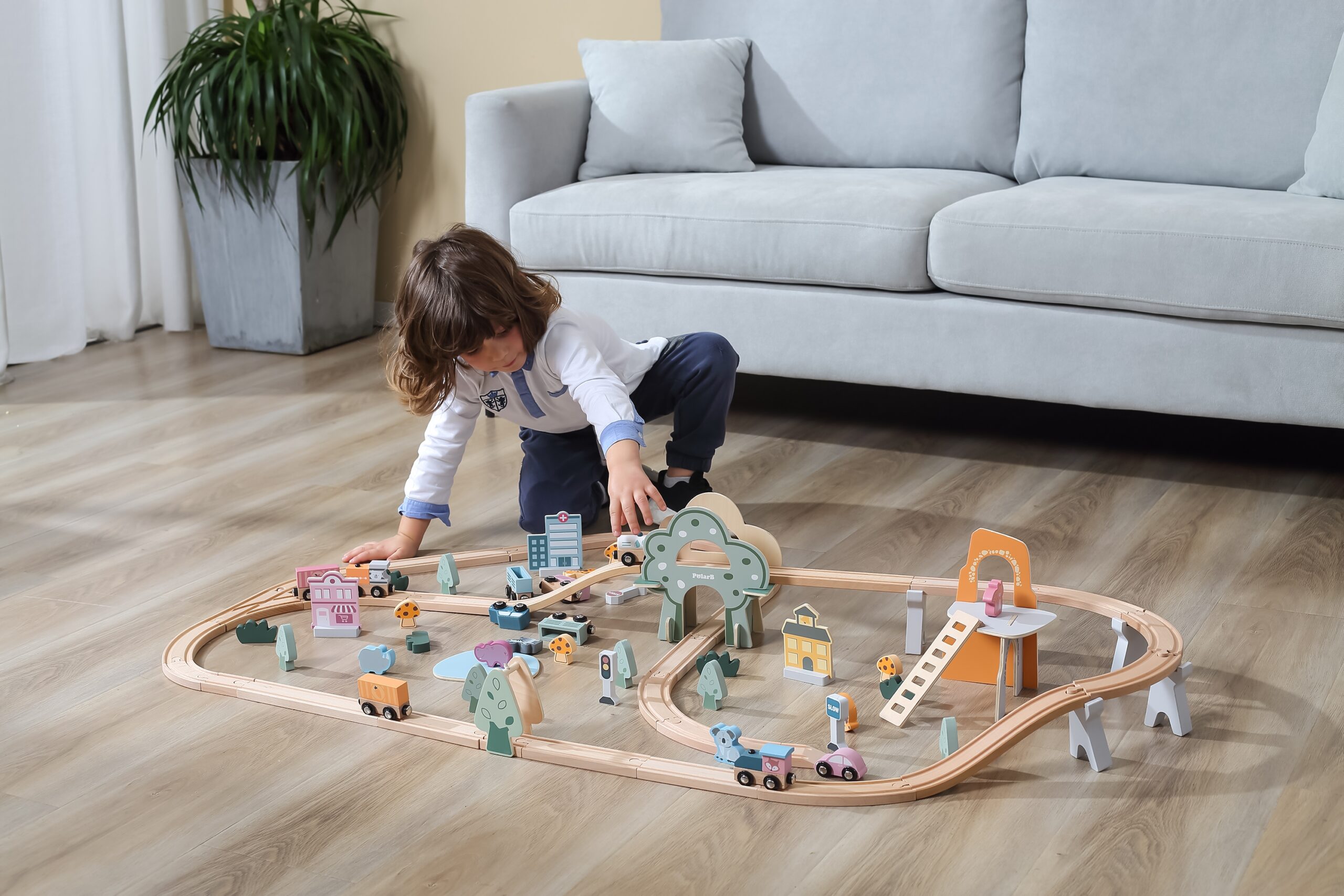 Pradžia Mediniai žaislai Kaladėlės, dėlionės Medinio traukinuko trąsa vaikams | 90 vnt. | PolarB | VIGA 44067