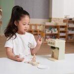 Vaikas gali pats paruošti „kavą“ svečiams – tereikia įdėti šaukštą su „kava“ į aparatą ir paspausti mygtuką, kad pradėtų veikti kavos ruošimo procesas. Tai puikus būdas skatinti vaikų kūrybiškumą ir įtraukti juos į vaidmenų žaidimą.