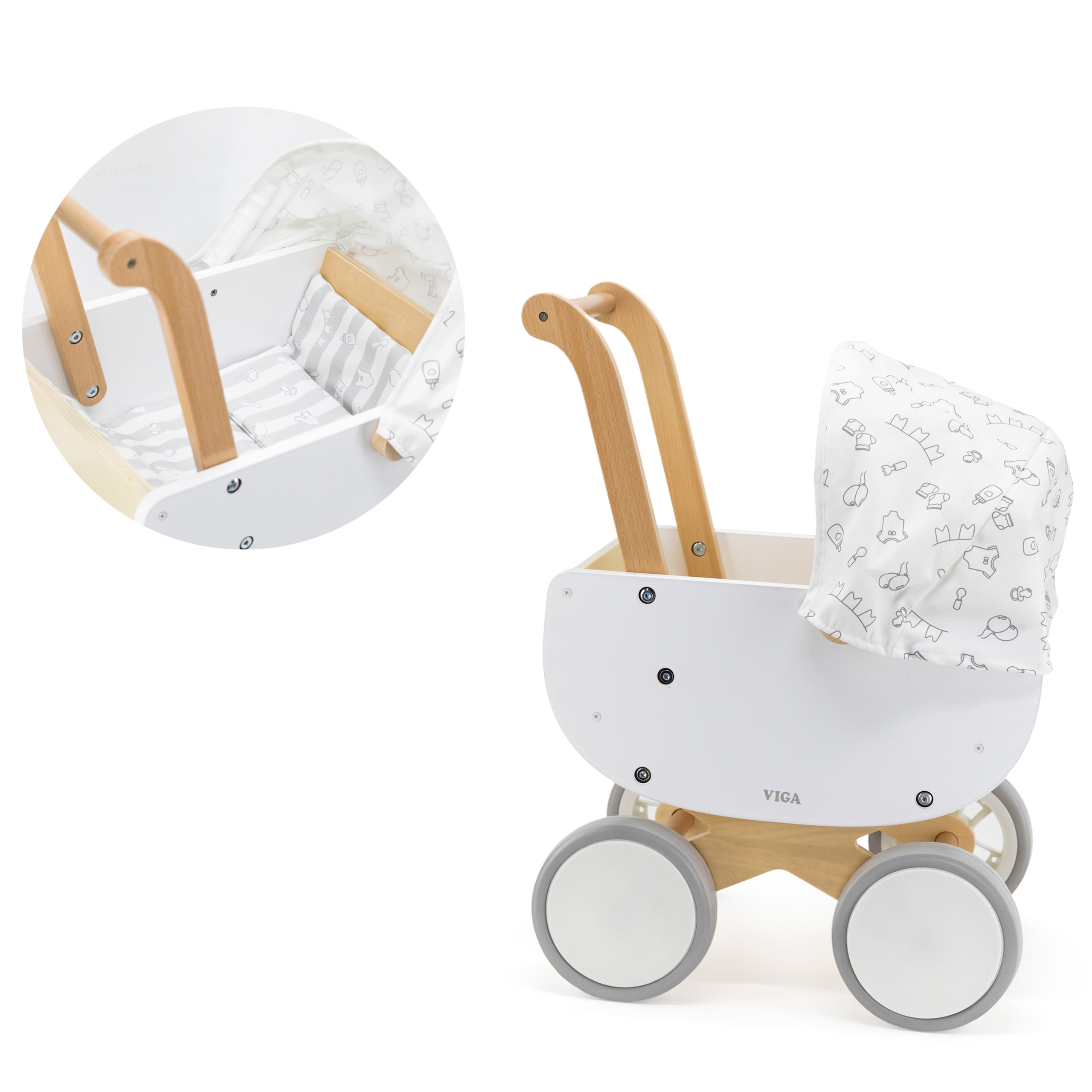 Viga medinis lėlių vežimėlis – stilingas ir saugus pasirinkimas mažajai mamytei!