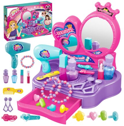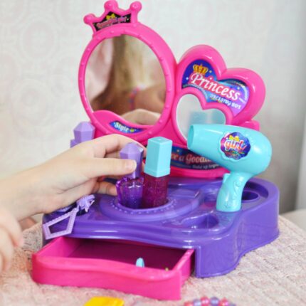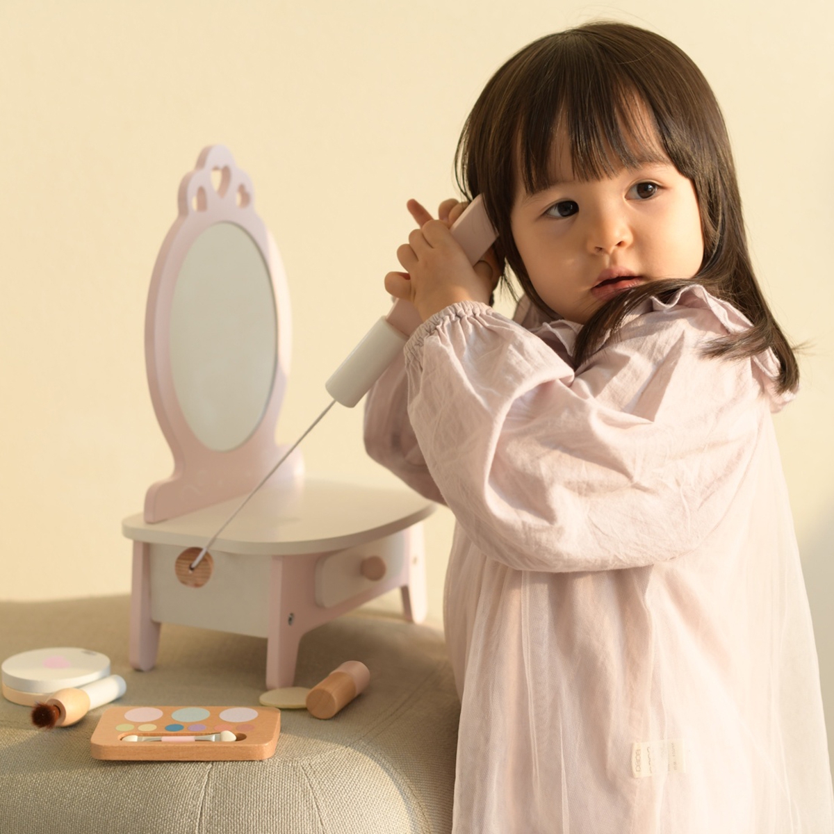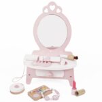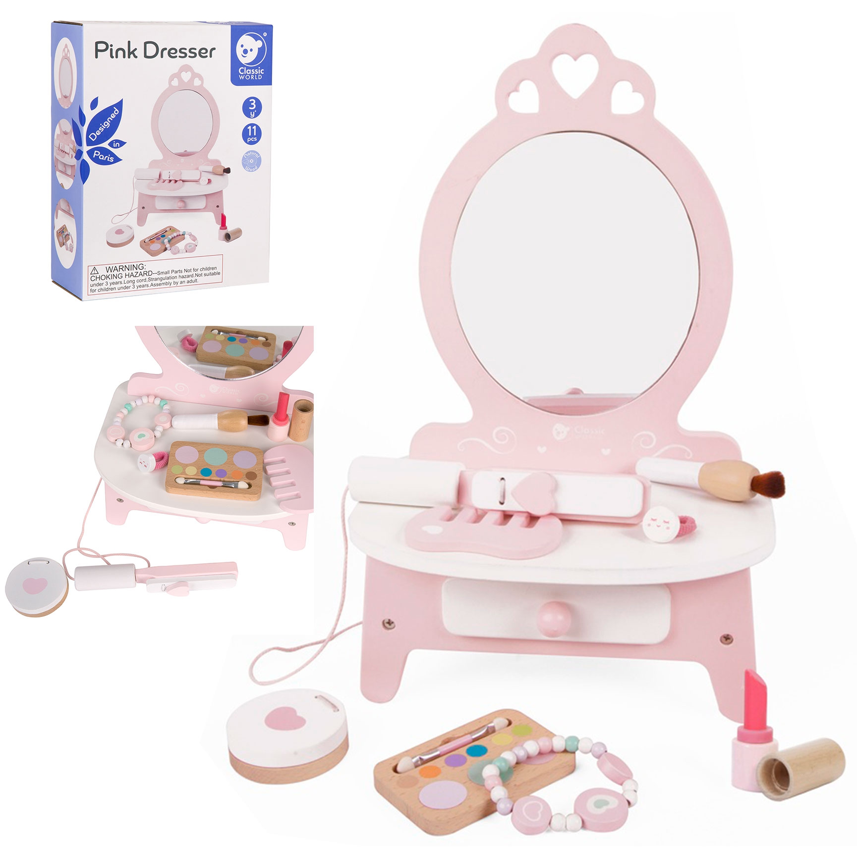 Šis gražus ir funkcionalus „Classic World“ tualetinis staliukas yra puiki dovana vaikams nuo 3 metų. Joje gausu makiažo ir šukuosenų priedų, kurie tikrai pradžiugins kiekvieną mažą stilistę. Staliuke yra veidrodis, kuriame vaikas gali matyti savo kūrybinius pasiekimus, o įvairūs priedai, tokie kaip šukos, lūpų dažai, tiesintuvas, makiažo šepetėlis ir kompaktiška pudra, suteiks smagios veiklos ruošiantis kartu su tėvais. Po staliuku esanti lentynėlė yra labai patogi, joje galima laikyti visus priedus. Tai puikus aksesuaras mergaičių kambariuose ar žaidžiant grožio salono žaidimus.