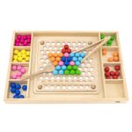 - Rankų ir Akių Koordinacija: Žaidimas skatina koordinacijos lavinimą, nes vaikai turi pritvirtinti rutuliukus prie lentoje esančių skylučių.