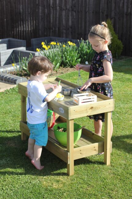 CLASSIC WORLD medinė virtuvės spintelė – kulinariniai nuotykiai lauke! Ieškote žaislo, kuris lavintų Jūsų vaiko vaizduotę, socialinius įgūdžius ir meilę