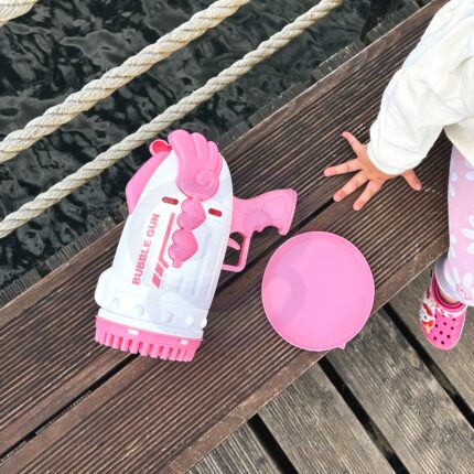 Žirafa ne tik pučia burbulus, bet ir groja malonią melodiją, kuri žaidimą daro dar įdomesnį. Aukštu dažniu išleidžiami burbulai yra papildomai varomi įmontuoto ventiliatoriaus, todėl jie skraido toliau, suteikdami vaikams daugiau džiaugsmo. Be to, žaislas turi šviesos efektą – pučiant burbulus, mirksi lemputės, kas dar labiau įtraukia vaikus į žaidimą.