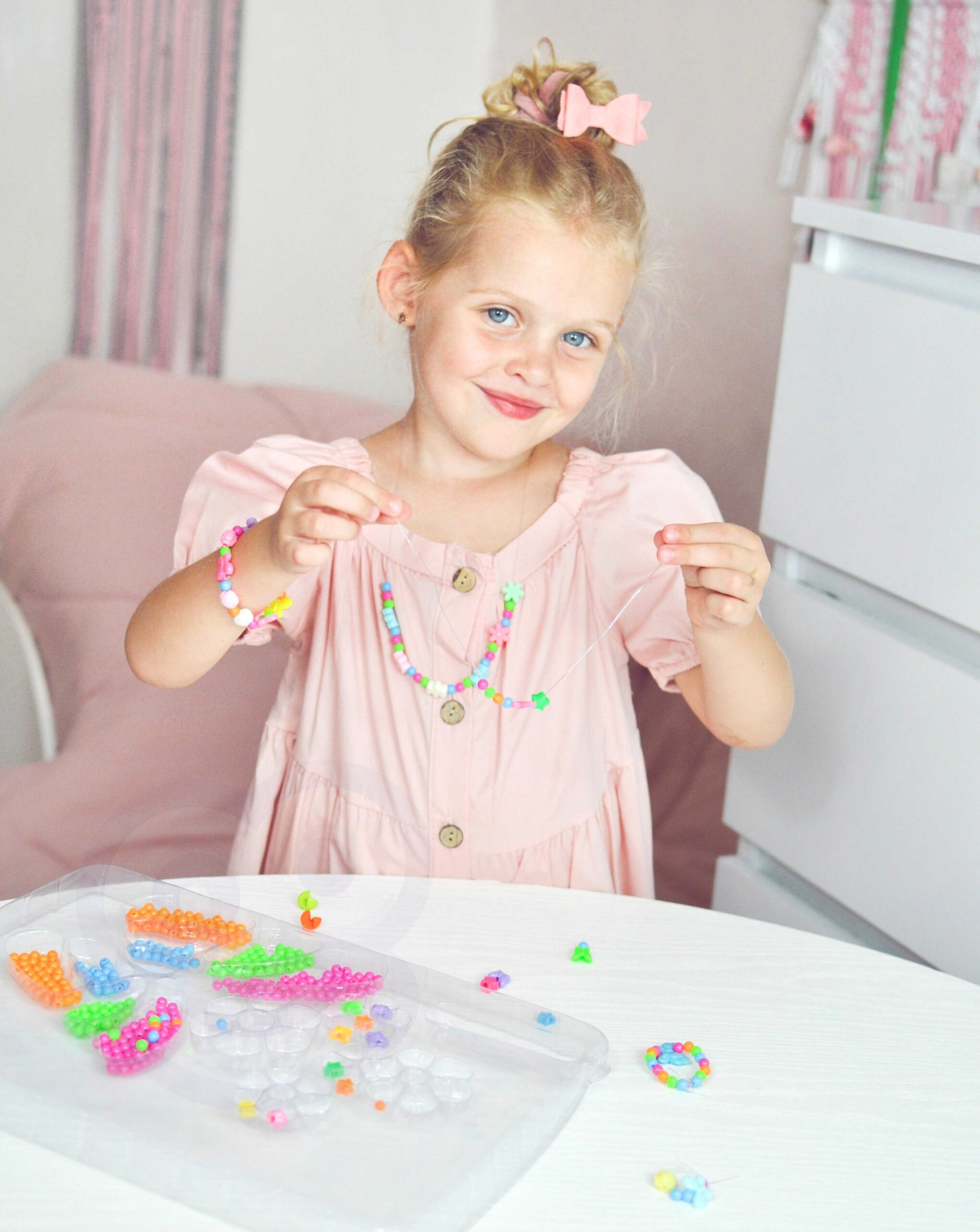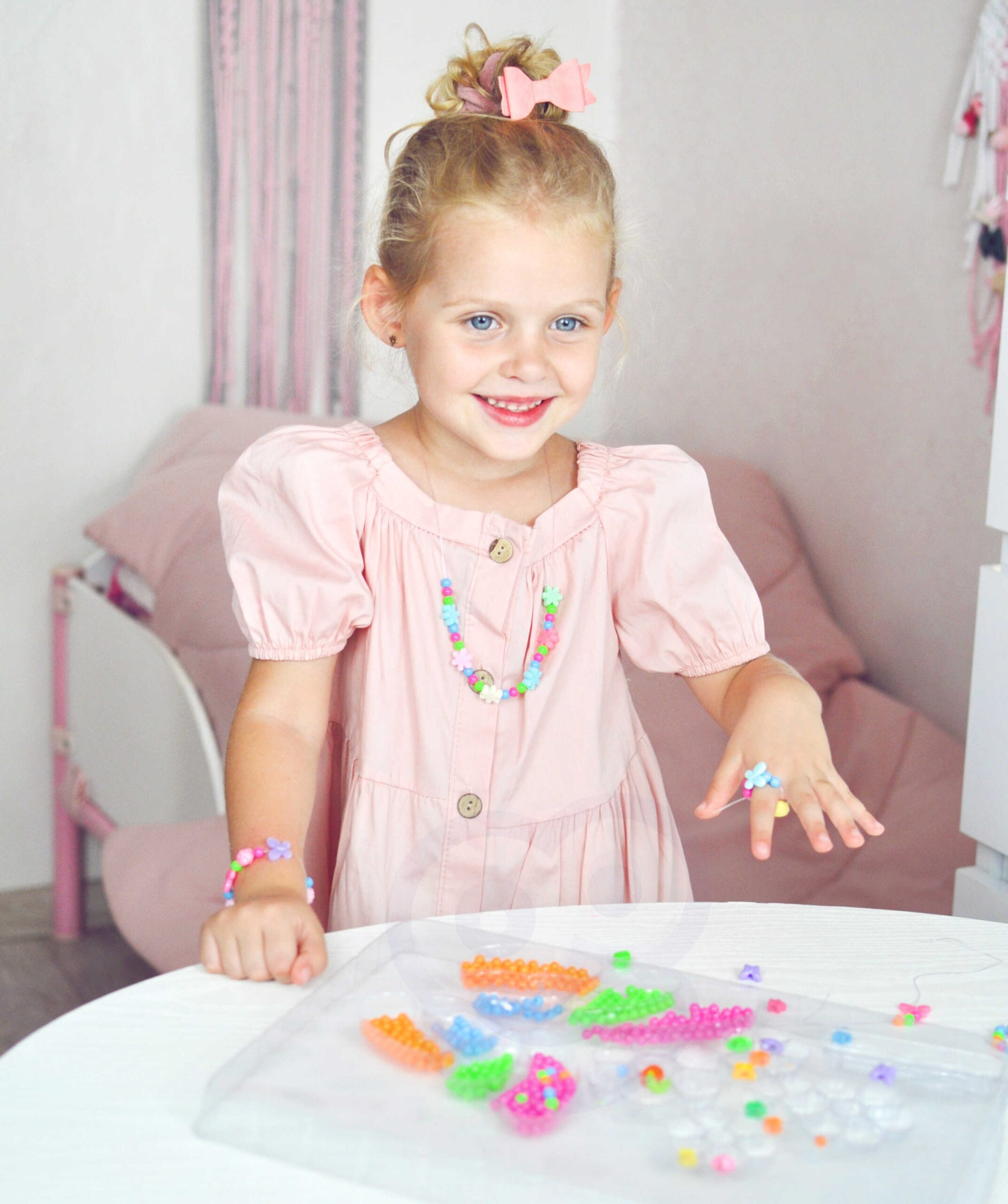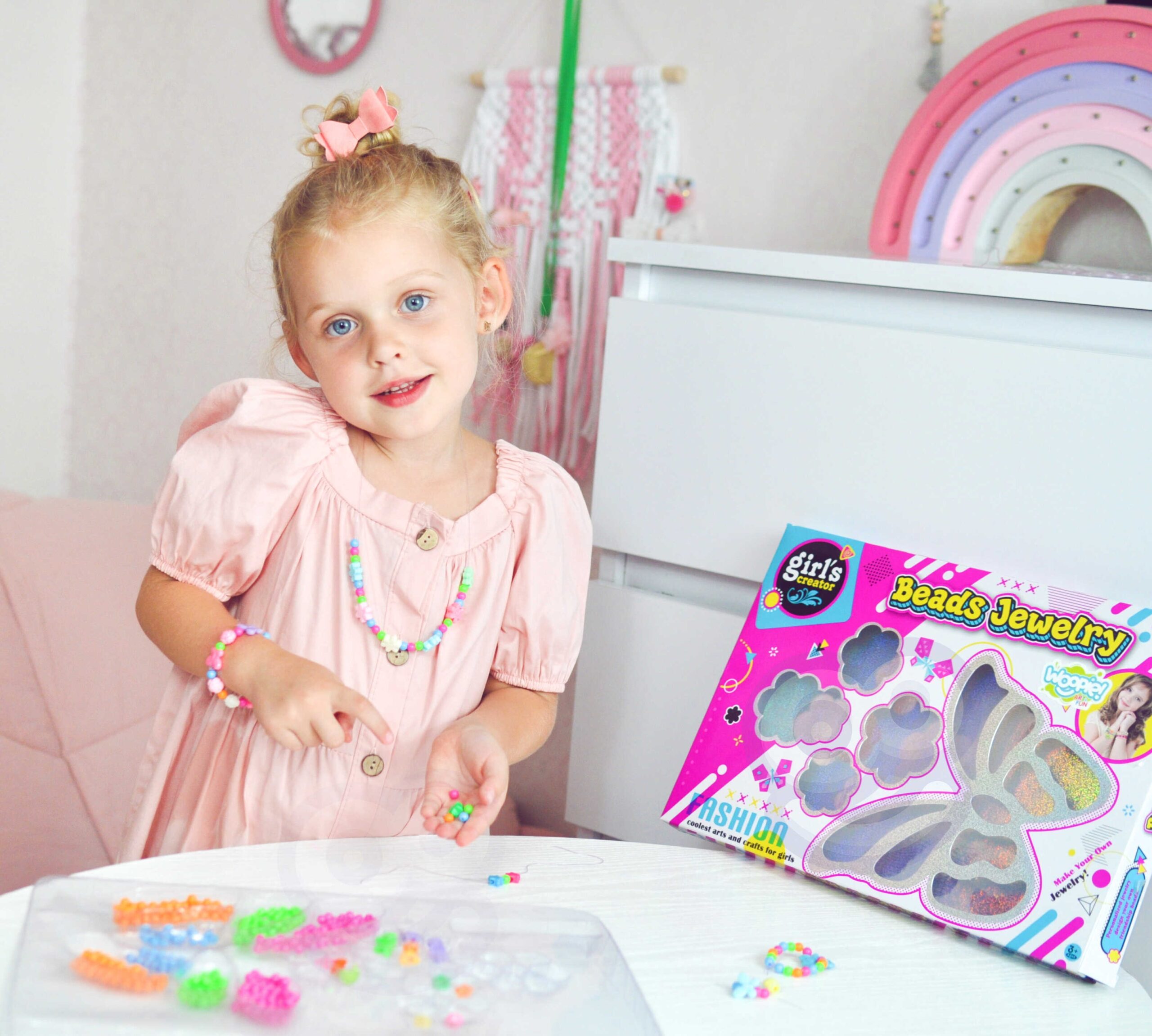 - Kūrybiškumas: Skatina kurti apyrankes ir pakabukus, leidžiant vaikams sukurti neribotą skaičių skirtingų papuošalų.