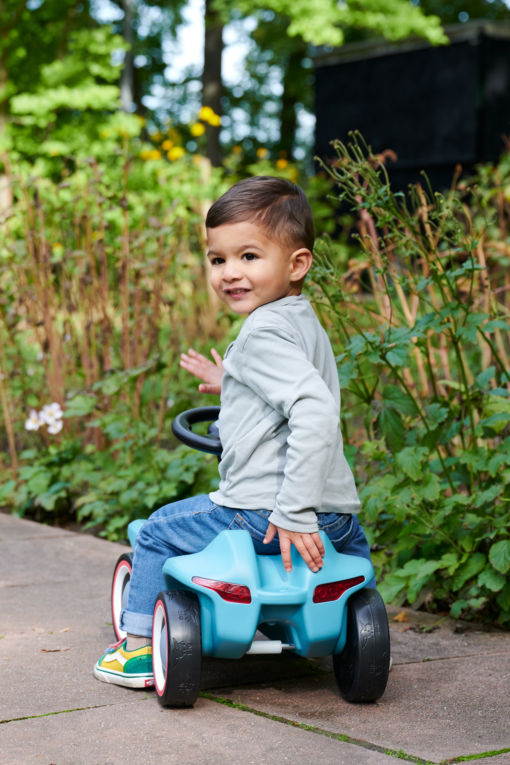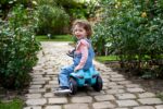 - Judesių koordinaciją: Vairuojant paspiriamą mašinėlę lavinama vaiko motorika ir pusiausvyros jausmas.