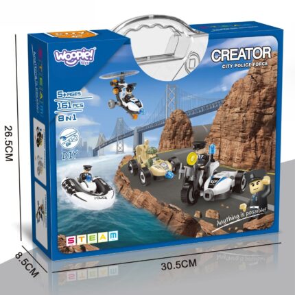 Kviečiame į jaudinančią teisėsaugos misiją su šiuo įspūdingu WOOPIE policijos lėktuvu-transporteriu! Šis didžiulis žaislas sukurtas jauniesiems herojams, svajojantiems tapti policininkais. Erdvus lėktuvo vidus talpina visą būtiną įrangą – tris policijos automobilius ir kelio ženklų rinkinį, kad žaidimas būtų kuo dinamiškesnis ir įdomesnis.