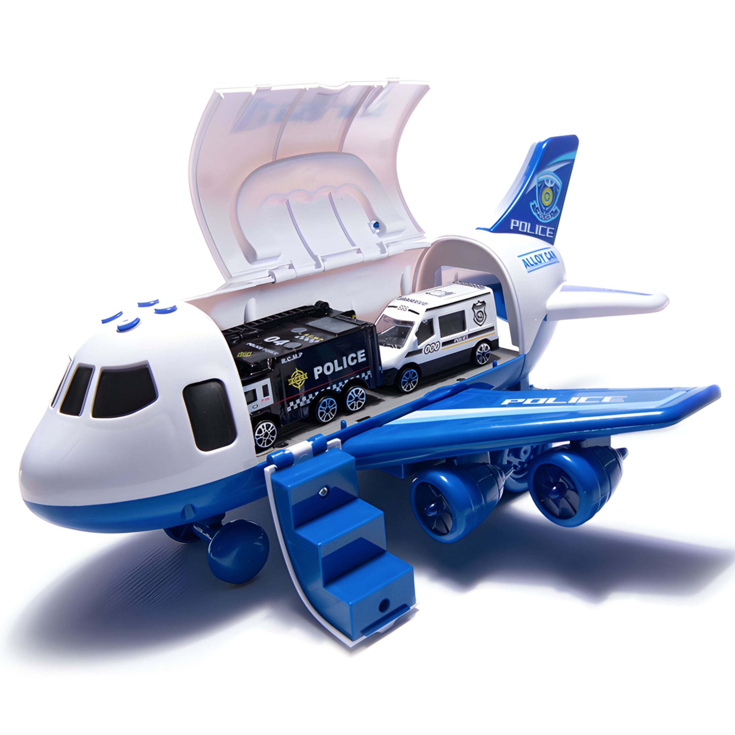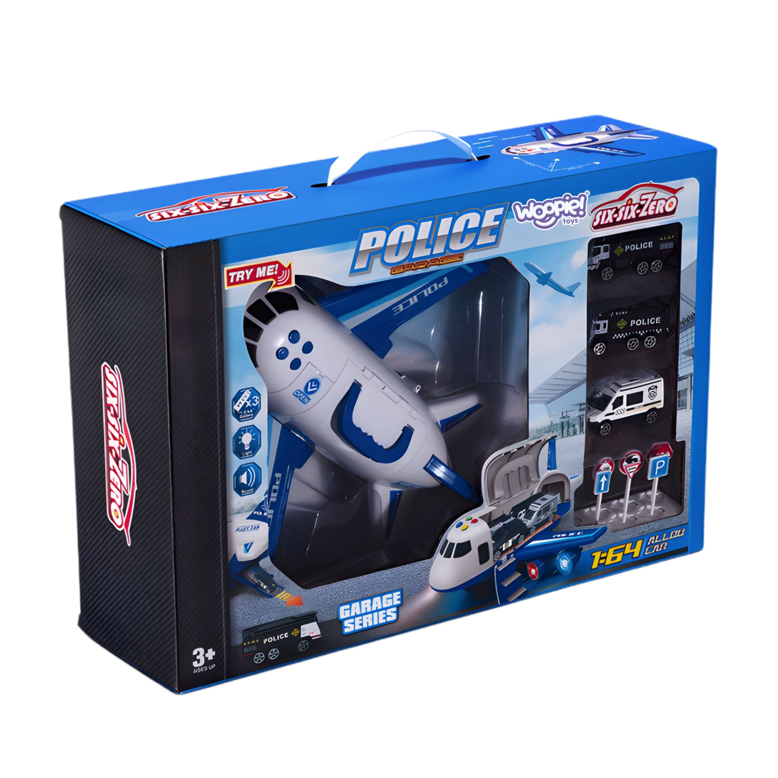 WOOPIE didelis policijos lėktuvas-transporteris su automobiliais ir ženklais