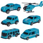 - – 5 automobiliai (tarp jų policijos), kiekvieno matmenys apytiksliai: 8 cm x 3 cm x 3 cm