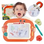 Magnetinė piešimo lenta suteikia galimybę vaikams ilgai ir kūrybiškai leisti laiką! Lenta skatina vaikus rašyti ir piešti, o piešimo procesas padeda susikaupti bei nuraminti. Su „Scribble“ funkcija vaikai gali sukurti daugybę paveikslėlių – tiesiog perkelkite specialų slankiklį ir piešinys išnyks, tad galima piešti vėl iš naujo! Rinkinyje taip pat yra patogus stebuklingas rašiklis ir 2 antspaudai, kurie suteiks dar daugiau kūrybinės laisvės. Lenta turi patogią rankeną, todėl ją lengva pasiimti su savimi bet kur.