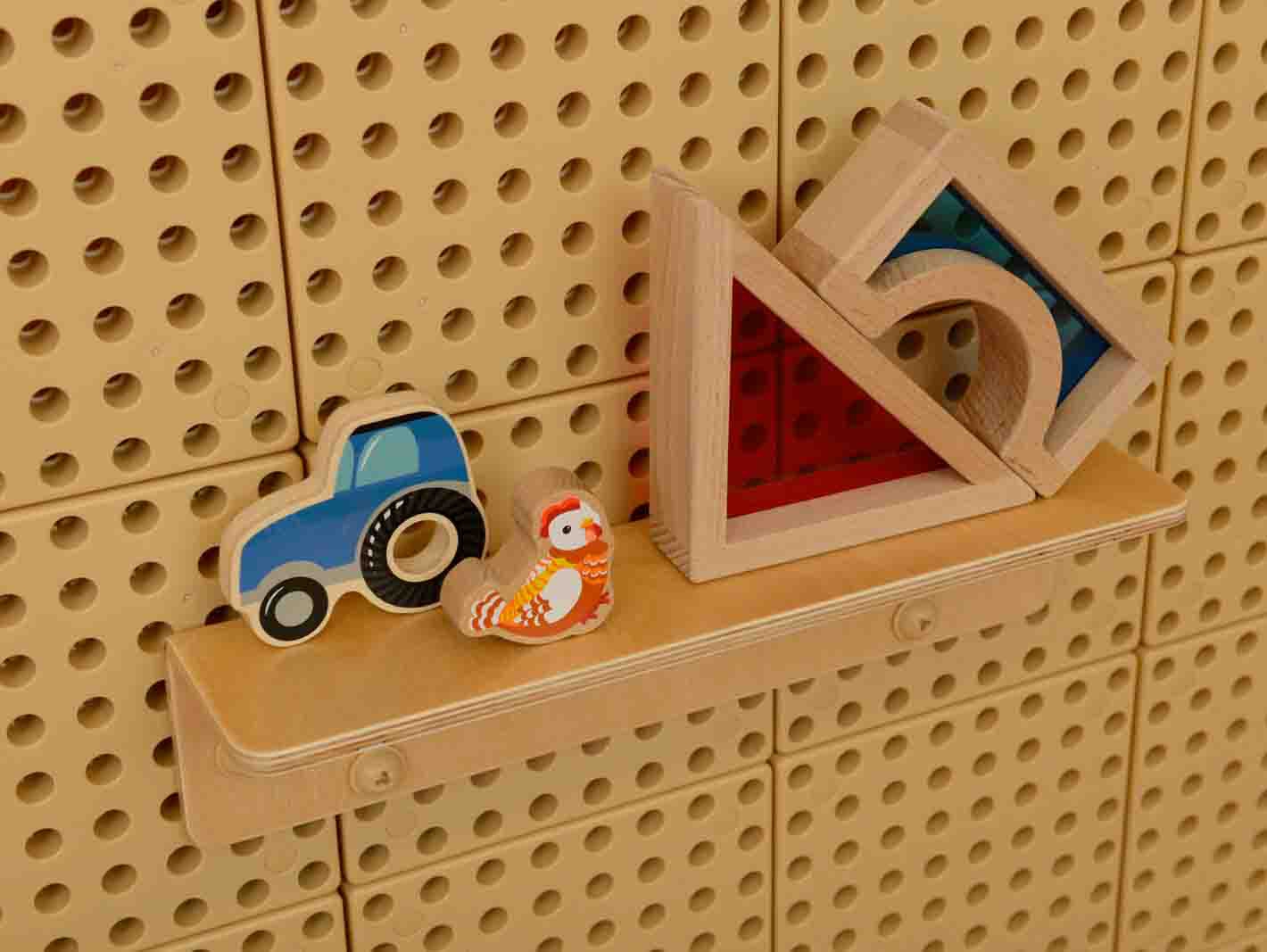 - Daugiau erdvės: Lentyna suteikia papildomos vietos žaislams, dekoracijoms, priedams ar kitiems daiktams laikyti, kad jie visada būtų po ranka.