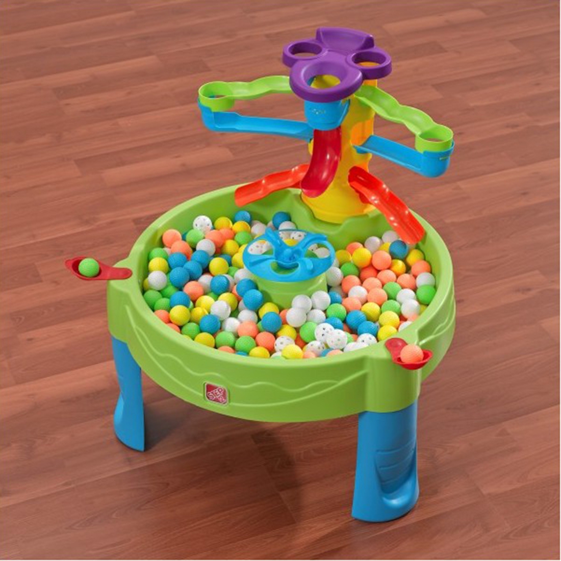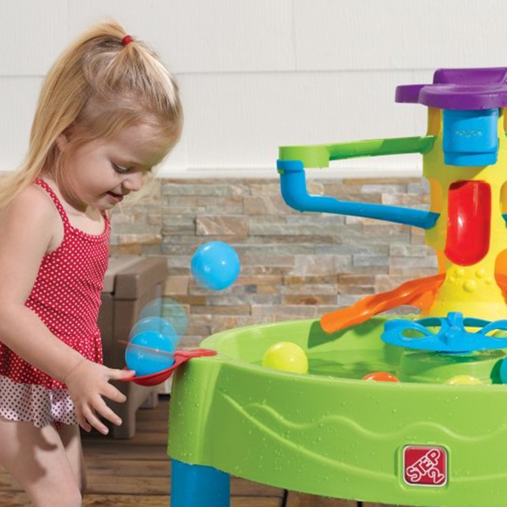 Spalvotas stalas, skirtas žaisti kamuoliu, yra labai smagu naudojant vandenį! Tokio stalo dar nebuvo! Užpildykite jį vandeniu ir paleiskite rutuliusnaudodami katapultą. Spalvotas dizainas irdaug latakų kamuoliukams užtikrins, kadjūsų vaikas galės visapusiškai išvystyti motorines funkcijas. Stalas puikiai tinka žaisti lauke ir namuose. Pramogos įmanomos ir be vandens! Stalątaip pat galima užpilti smėliu. Išleidimo kaištis užtikrinagreitą stalo ištuštinimą irlengvąvalymą po žaidimo.