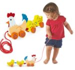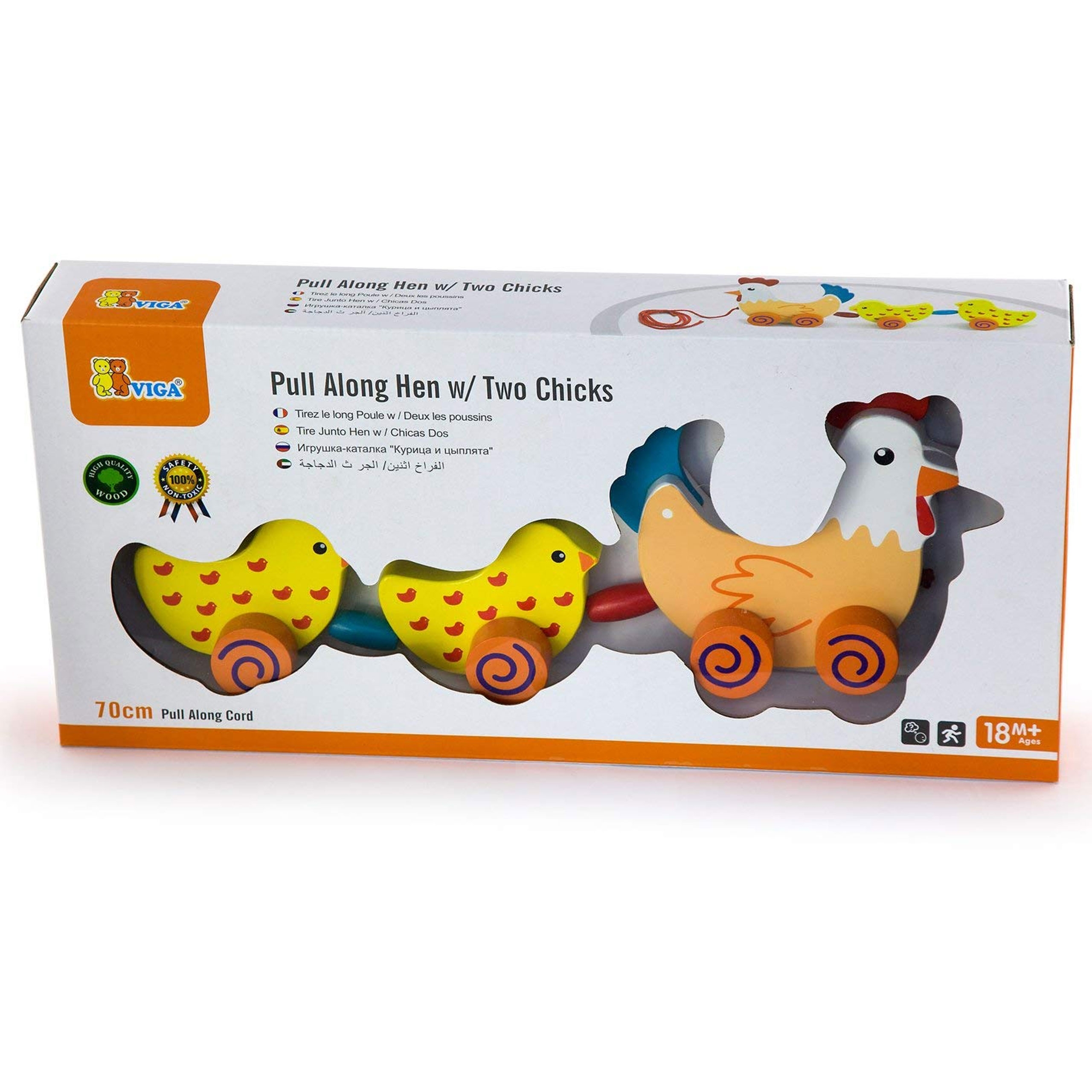 Medinis traukiamas žaislas „Vištytė su viščiukais“ Supažindinkite savo mažylį su nuostabiu judėjimo džiaugsmu! Šis „Viga PolarB“ serijos medinis traukiamas žaislas