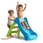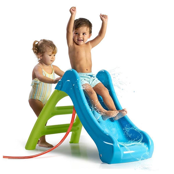 Pirmoji Ispanijos prekės ženklo FEBER Slide čiuožykla yra skirta vaikams nuo 1 metų ir puikiai tinka kaip pirmoji čiuožykla jūsų vaikui. Ji turi funkciją „du viename“ – galimybę prijungti sodo žarną ir paversti čiuožyklą vandens žaidimų aikštele, puikiai tinkančia karštomis dienomis. Čiuožyklą lengva sulankstyti ir laikyti garaže. Ji pagaminta iš patvaraus ir atsparaus plastiko, padengto ANTI UV danga, apsaugančia nuo išblukimo.