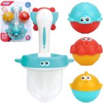 WOOPIE vandens žaislų rinkinys – puikus priedas jūsų vaiko voniai, kuris padarys maudymosi laiką smagesnį ir interaktyvesnį! Šis rinkinys, sudarytas iš keturių elementų, suteikia galimybę vaikams gaudyti kamuoliukus į tinklą arba mesti juos į jį, skatinant kūrybiškumą ir aktyvų žaidimą.