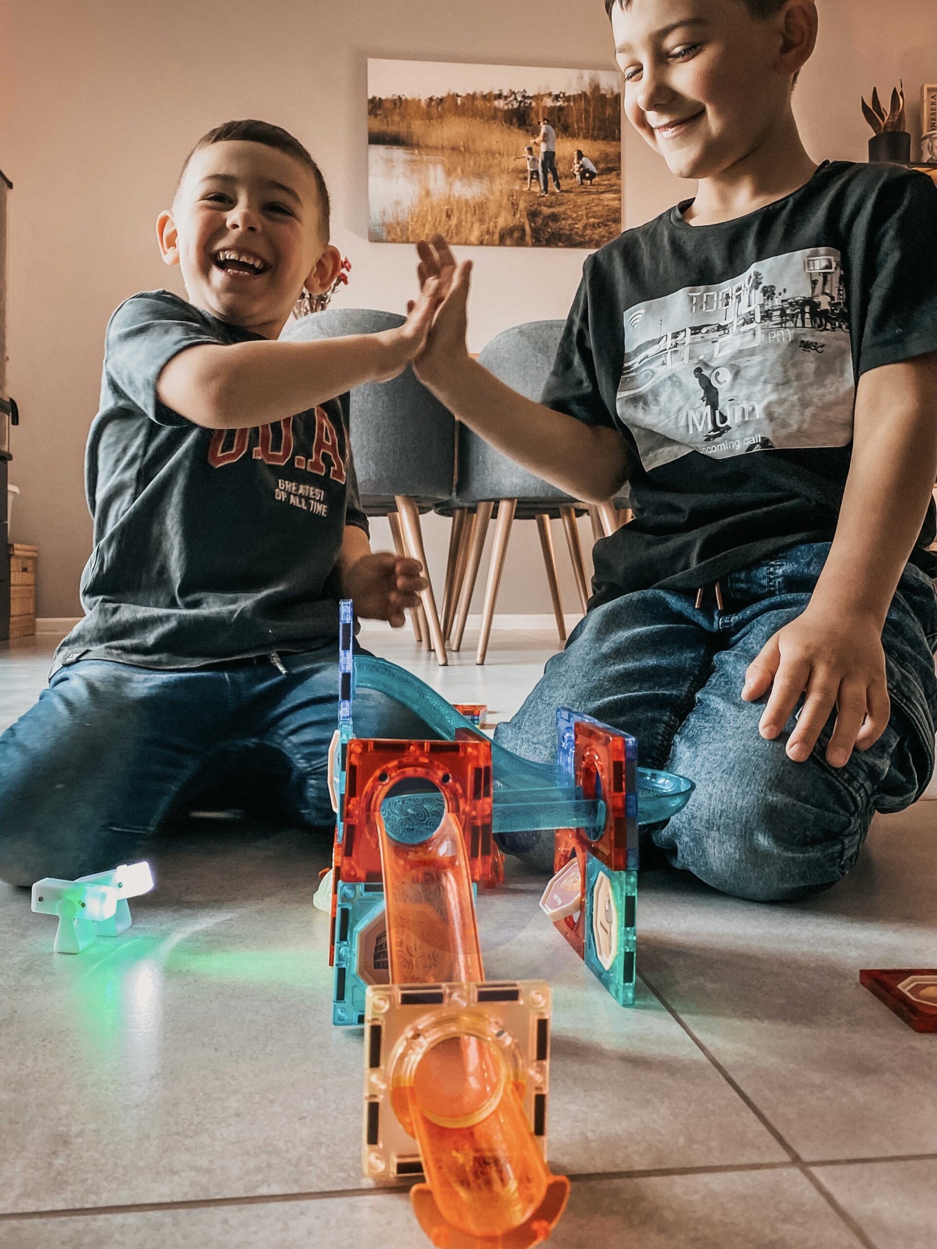 Prekės ženklo WOOPIE magnetiniai blokeliai pritrauks jūsų vaiko dėmesį ir sužavės. Blokai yra labailengvai sujungti vienas su kituir juos panaudodami galite sukurti nuostabiaskonstrukcijas su čiuožyklomis, pvz., takelį, kuriuo juda kamuolys. Trasą galimaapšviestisu pridedamu žibintuvėliu, kad jis būtų dar įspūdingesnis, o pats vaikas paskui galės stebėti, kaip juda šviesa, o tai lavinssuvokimą. Vien tik trasos išdėstymas taip, kad kamuoliukai be problemų pasiektų pabaigą, lavins vaikologinįmą,vaizduotą,kūrybiškumąir valią. leidžia susikoncentruotikuriant struktūrą. Dėliodamas kaladėles vaikas mokosi formų ir spalvų, lavina vadinamuosius rankinius įgūdžius. smulkioji motorika.