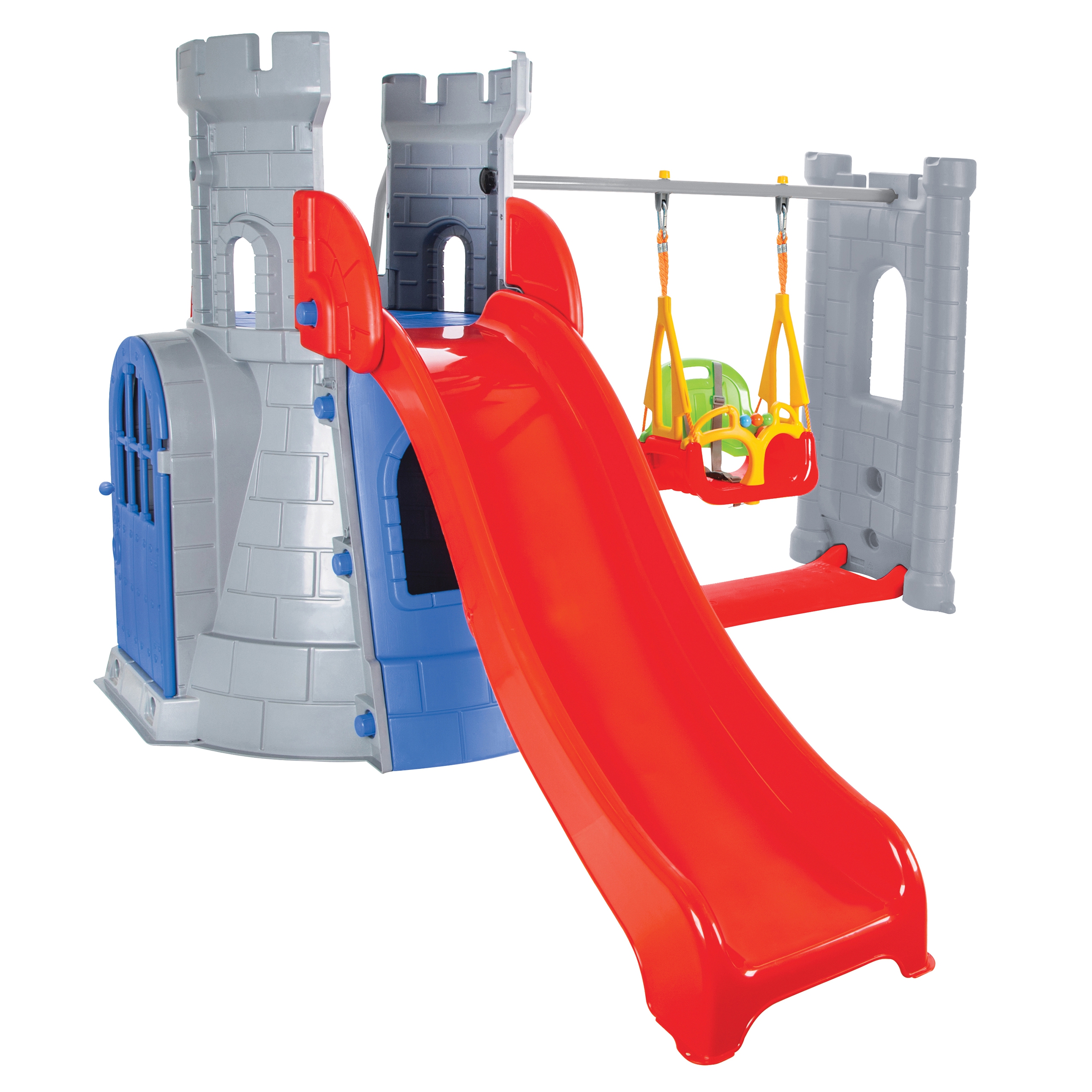 - – Daugiafunkcinis rinkinys 3 viename: tvirtas pilies bokštelis, ilga čiuožykla ir smagios sūpynės.