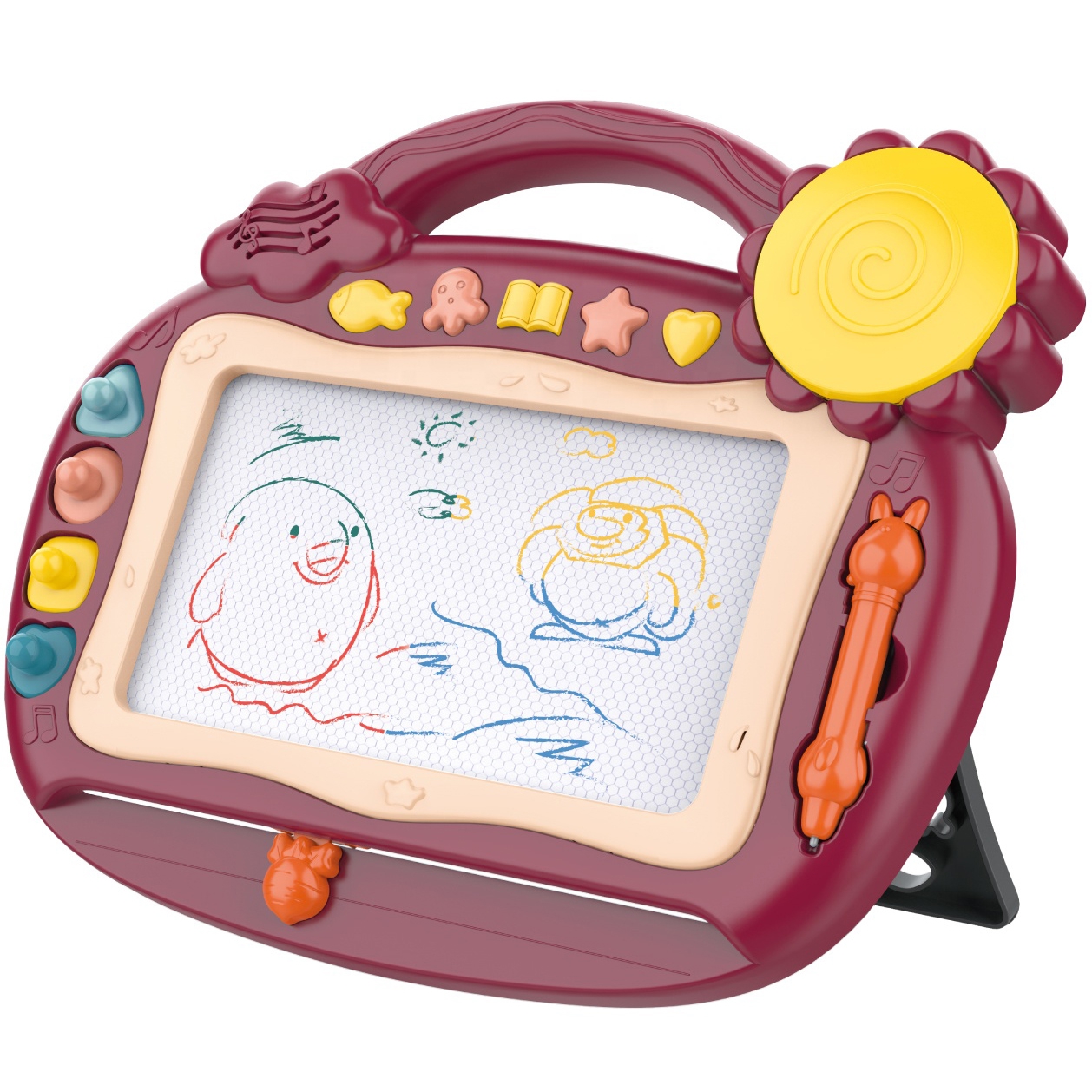 Ši magnetinė lenta yra puikus įrankis vaikų kūrybiškumui ugdyti. Ji leidžia vaikams piešti, rašyti ir iš karto ištrinti piešinius, naudojant specialų slankiklį. Be to, lenta yra aprūpinta garso efektais ir muzikos funkcijomis, kurios suteikia papildomo džiaugsmo ir skatina vaikų susidomėjimą.